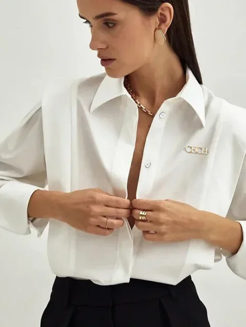 CHCH 2024 Summer New Women Shirts Solid Color Slim Shirt Waist Design Vintage Female Blouses Fashion Office Ladies Shirts