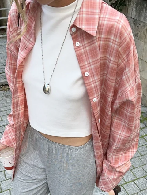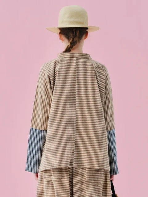 imakokoni 2025 Spring Pure Cotton Color Contrasting Checkered New Chinese style Hanging Back Shirt 244932
