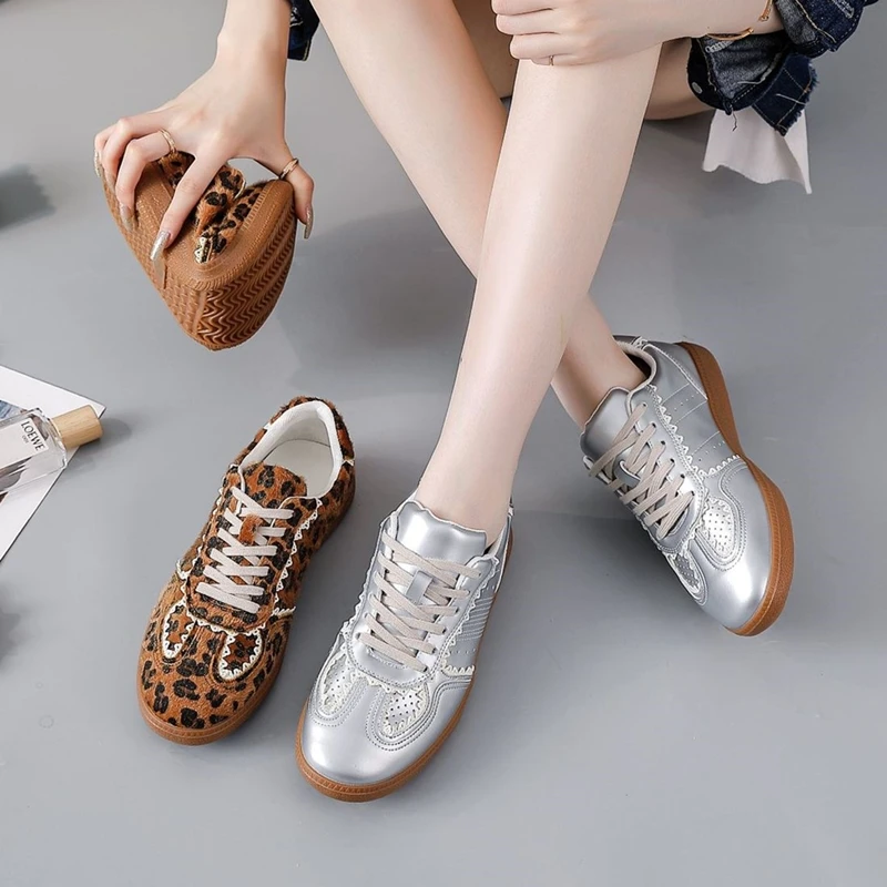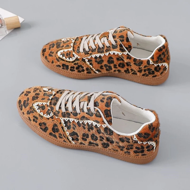 The leopard print design adds a touch of wild elegance, making these sneakers a standout choice for fashion-forward women.