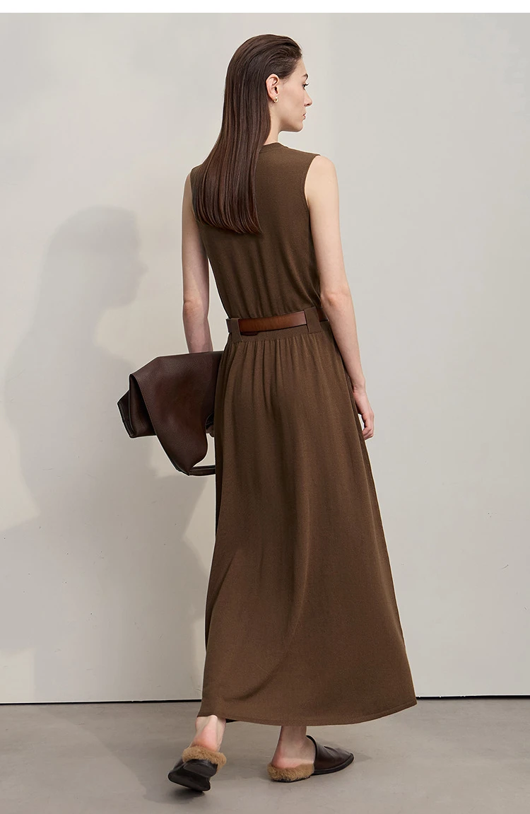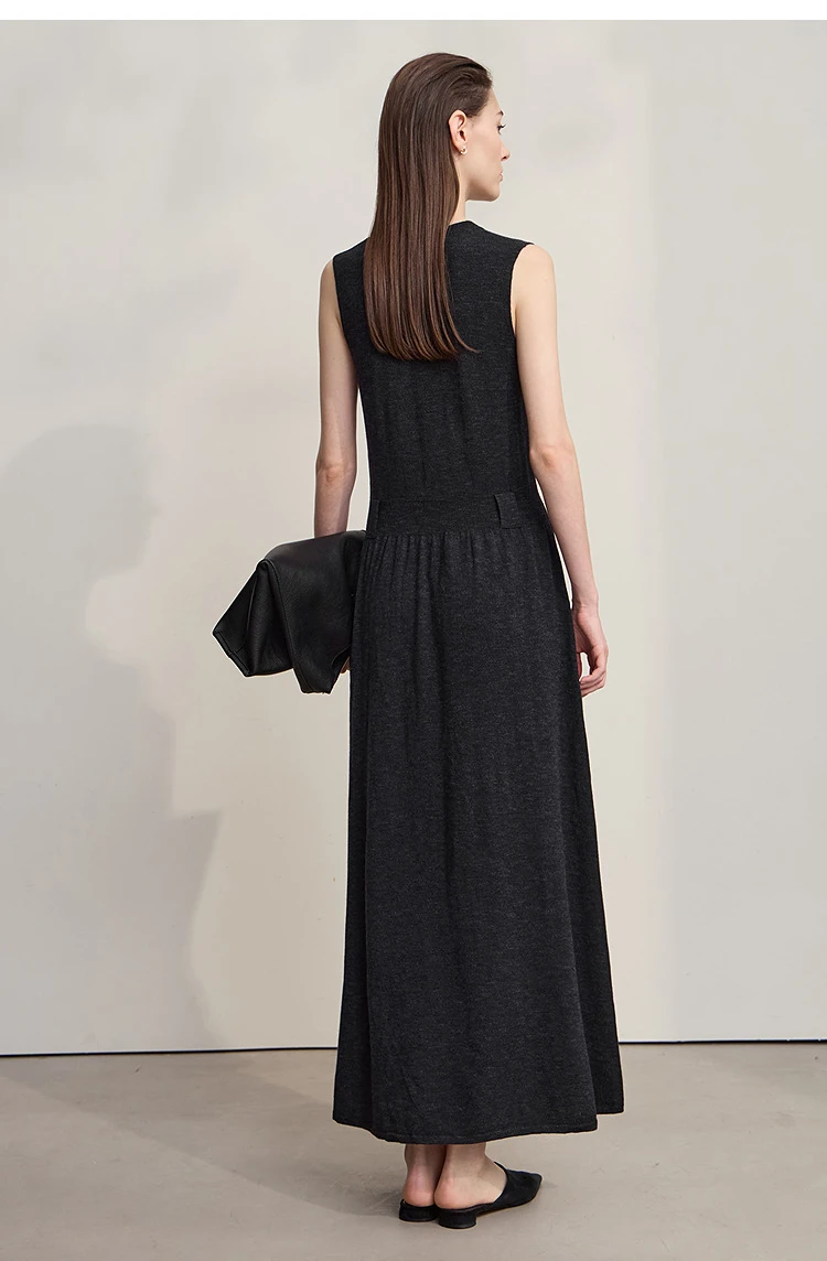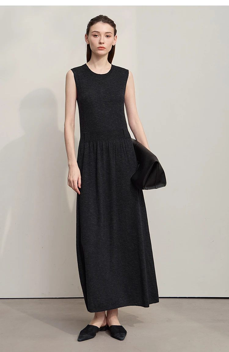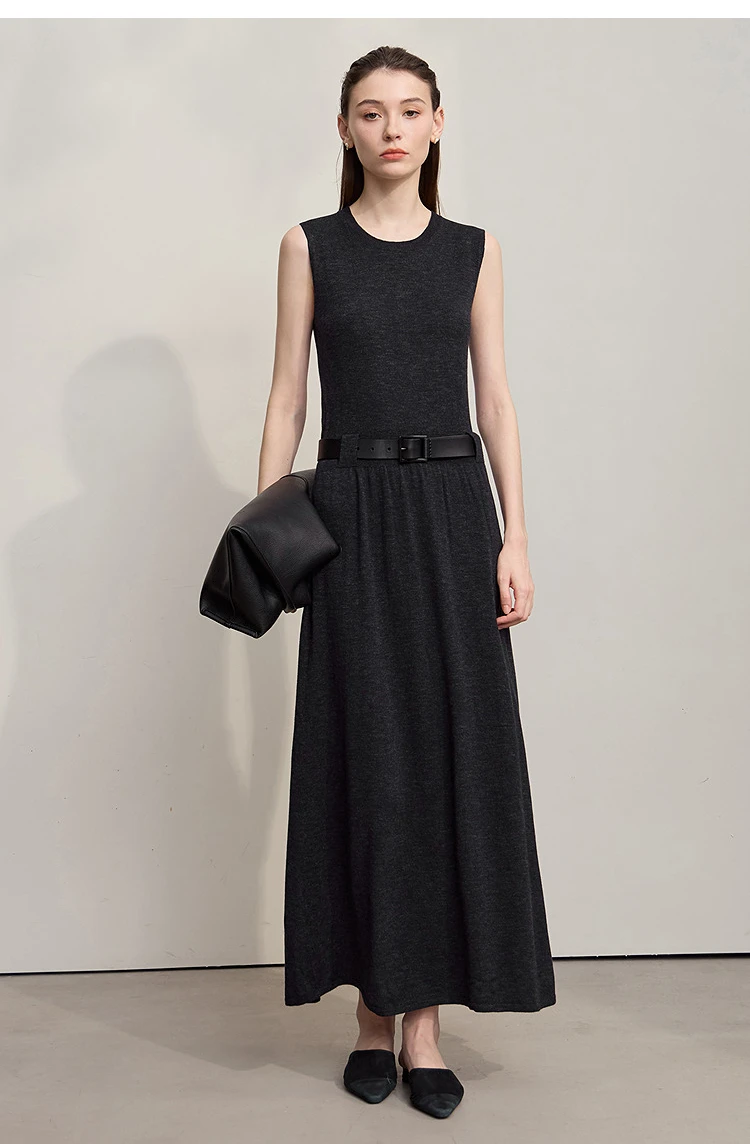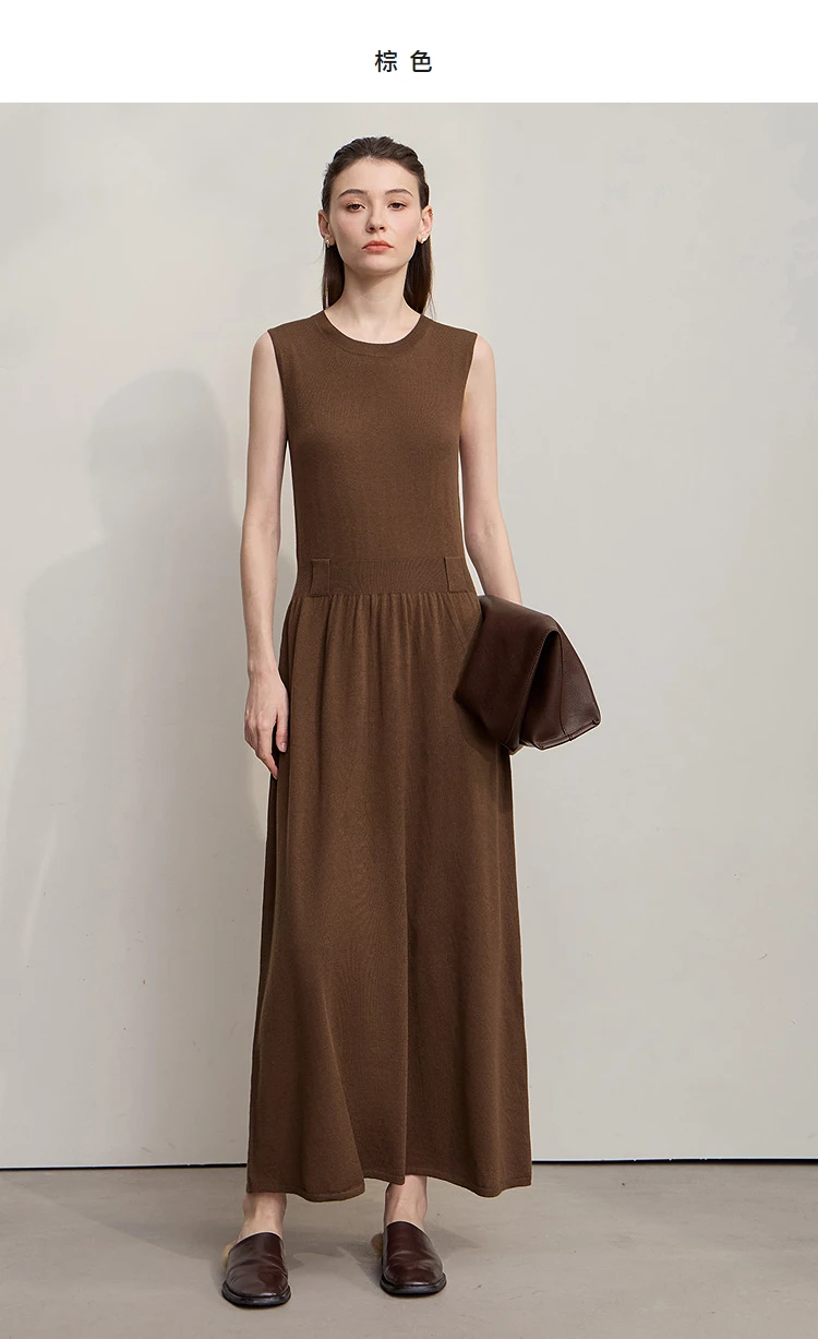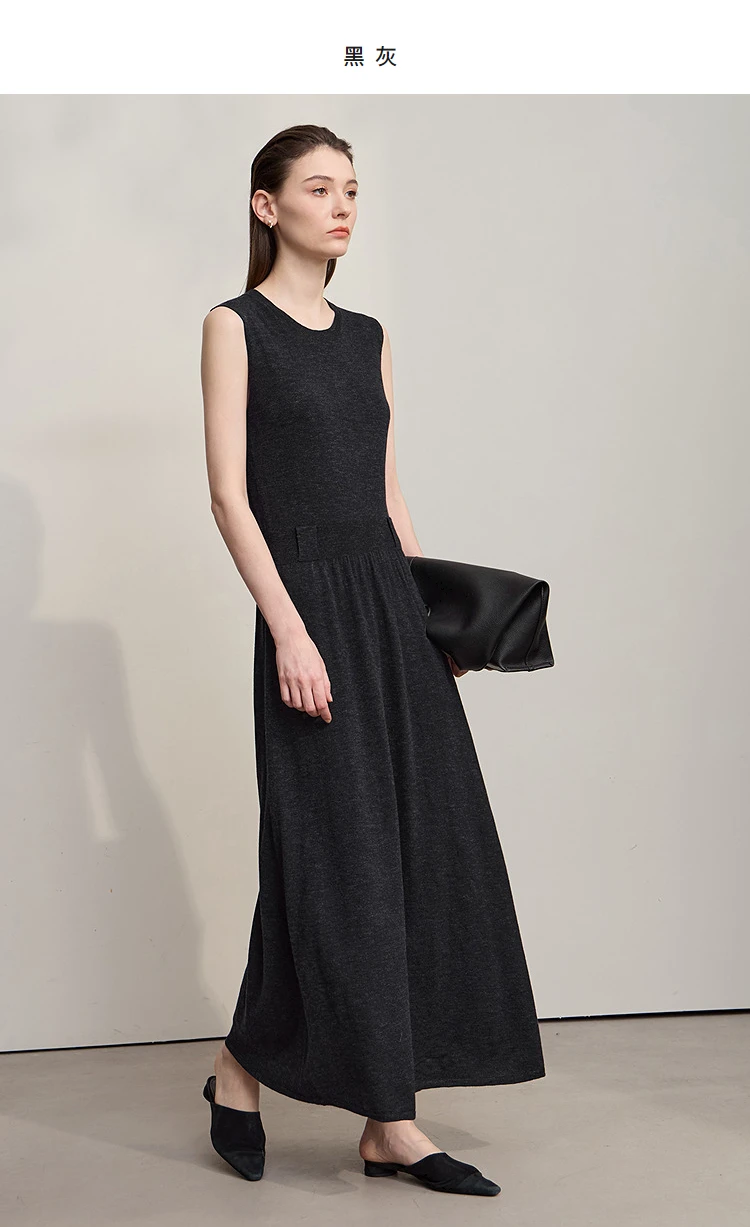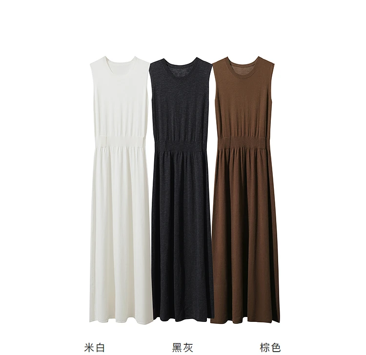 AMII Women’s Dress 2025 Autumn New Minimalist Solid Color Woman Clothing Round Neck Sleeveless Pullover Dress Ladies 12543209