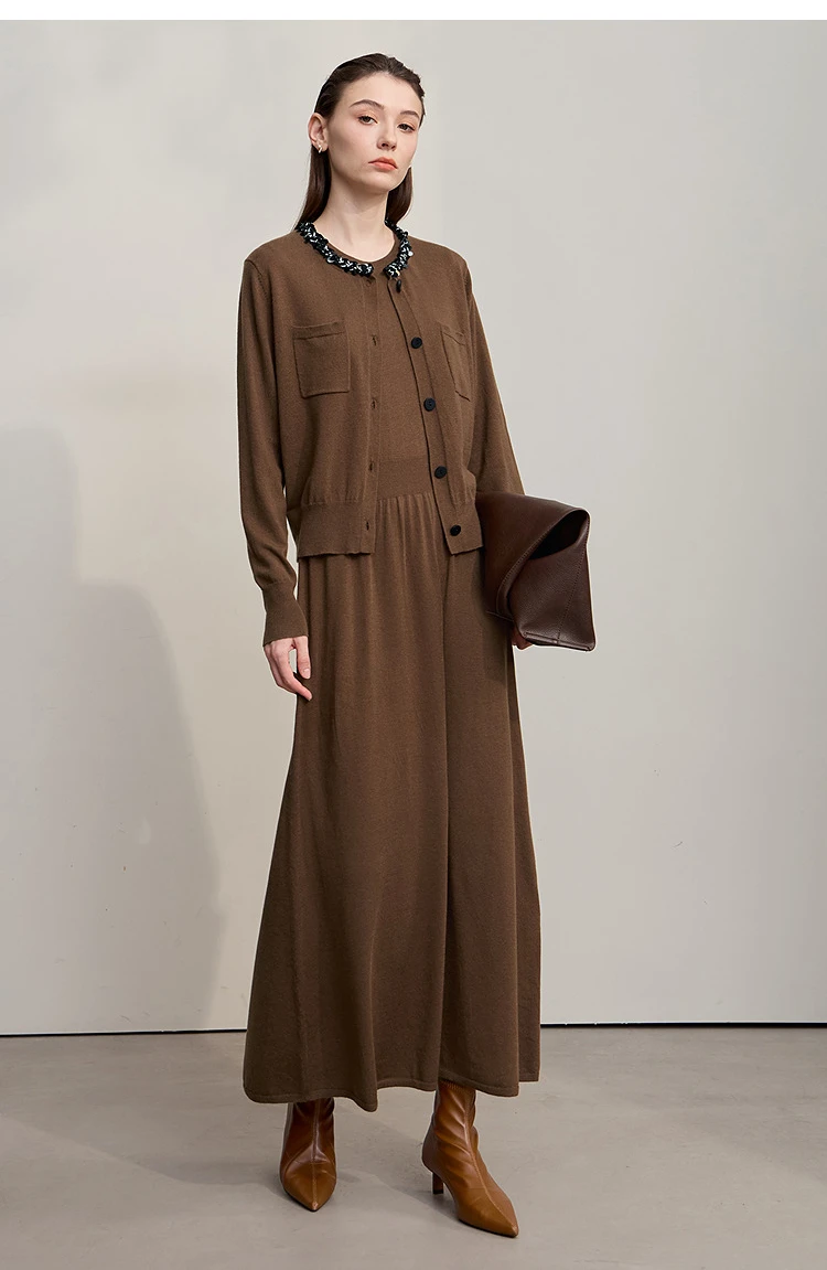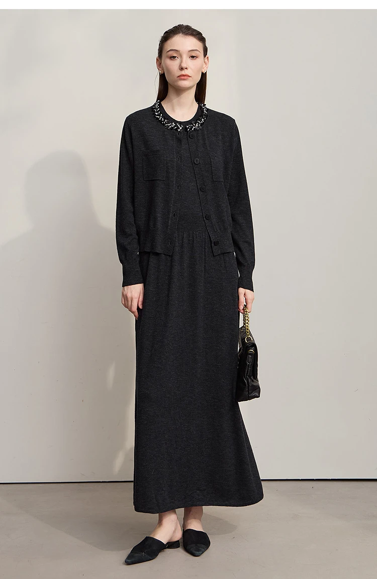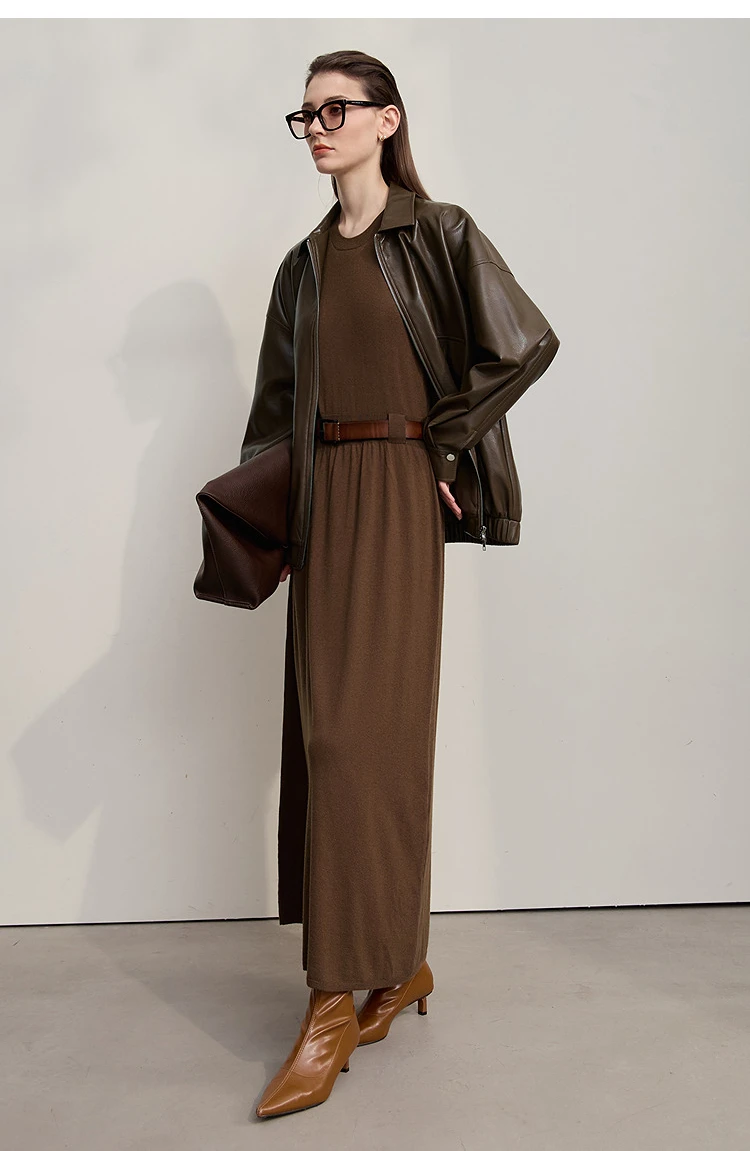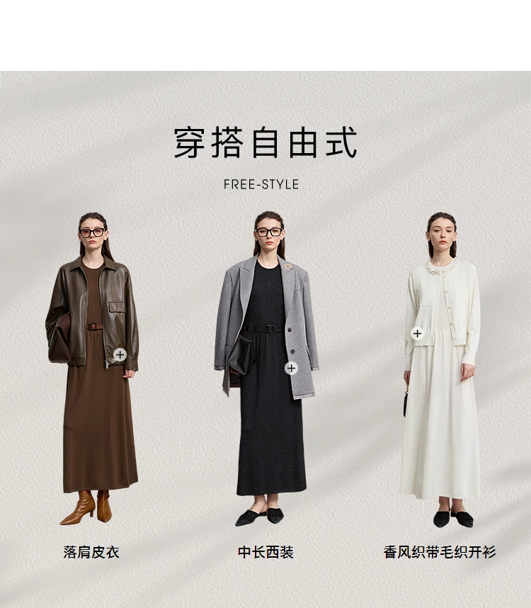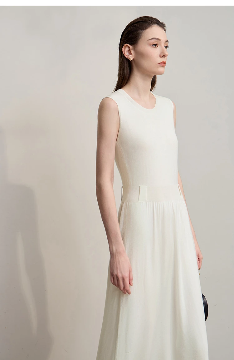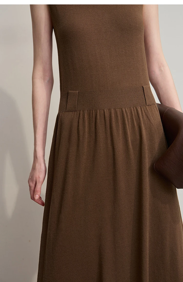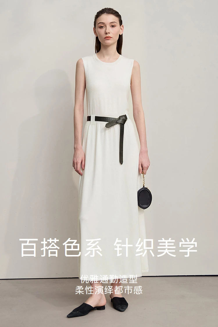 AMII Women’s Dress 2025 Autumn New Minimalist Solid Color Woman Clothing Round Neck Sleeveless Pullover Dress Ladies 12543209