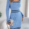 Autumn Winter Casual Elegant Square Collar Button Decoration Knitted Dress Long Sleeve Bodycon Dress for Women