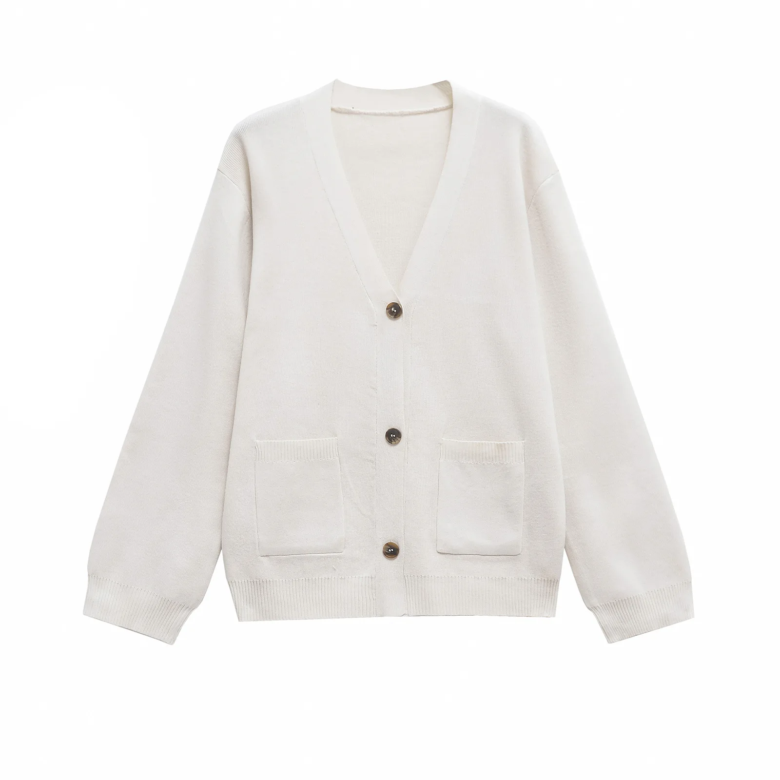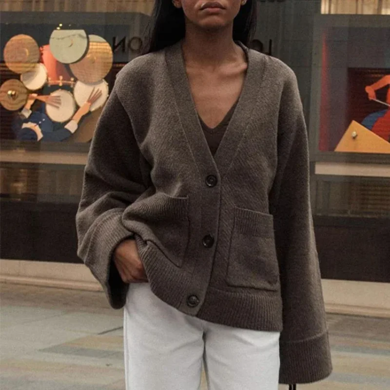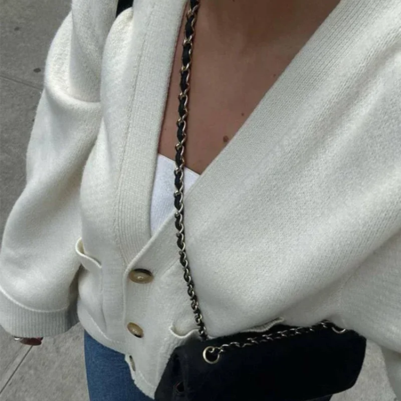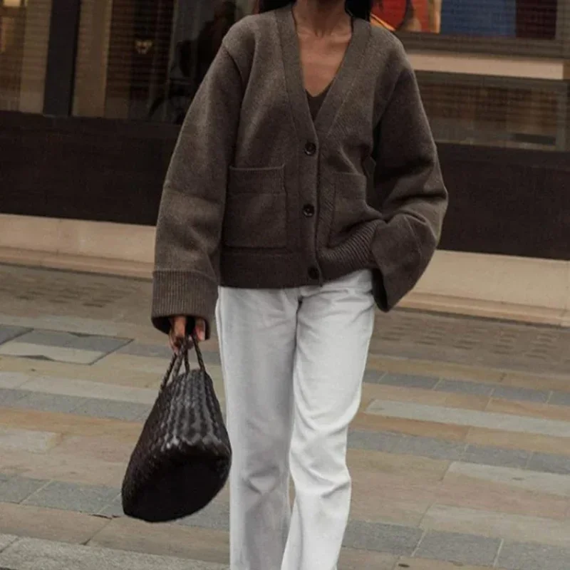Autumn Women’s Cropped Cardigans V-neck Knitted Sweater Coat Long Sleeve With Pocket Casual Streetwear 2025 New Outwear Fashion