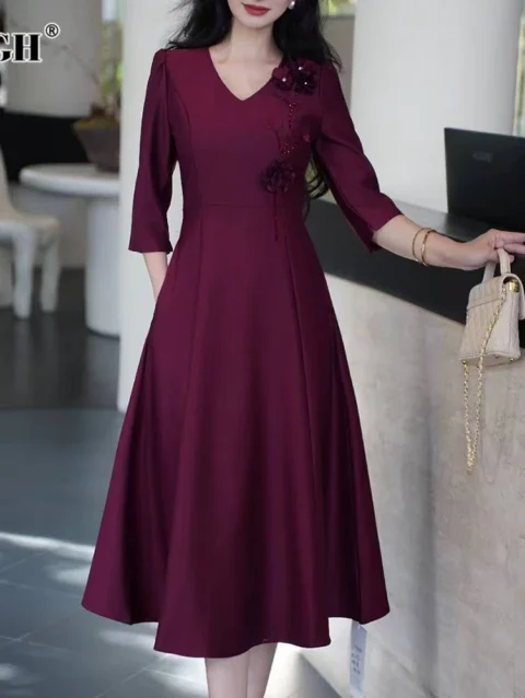 • V-Neck Design : The V-neck design of this dress accentuates your neckline, adding a touch of elegance and sophistication.