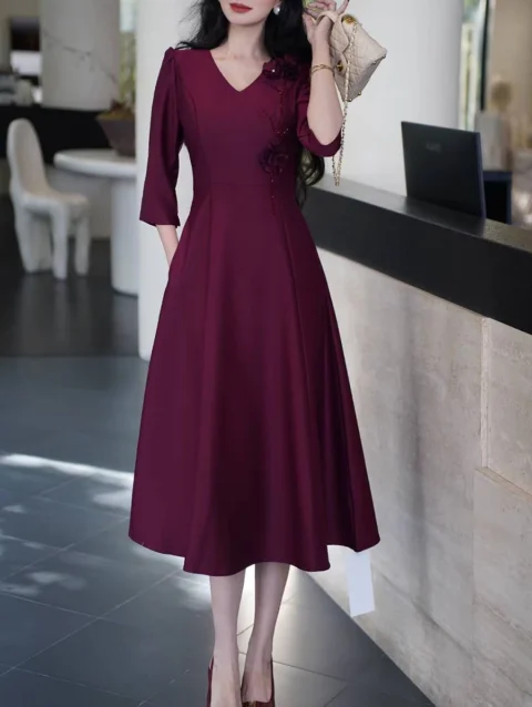 • V-Neck Design : The V-neck design of this dress accentuates your neckline, adding a touch of elegance and sophistication.
