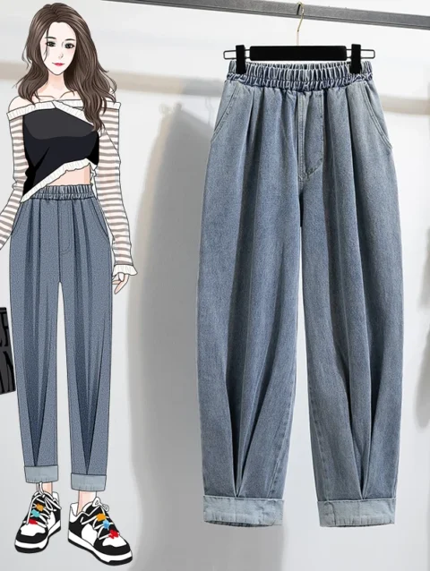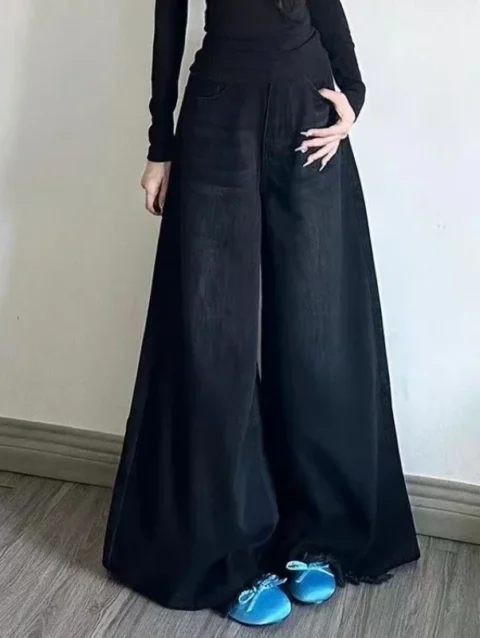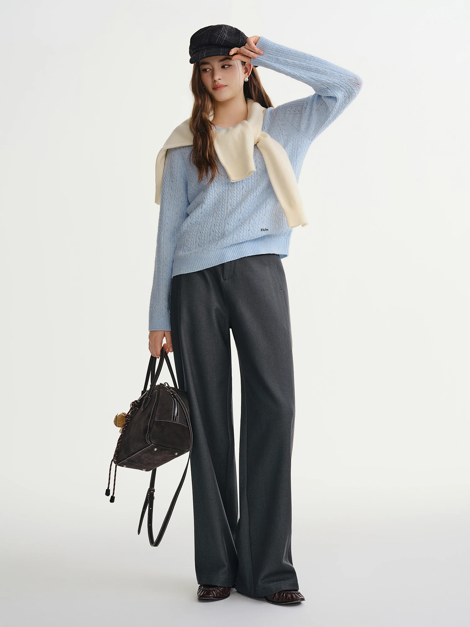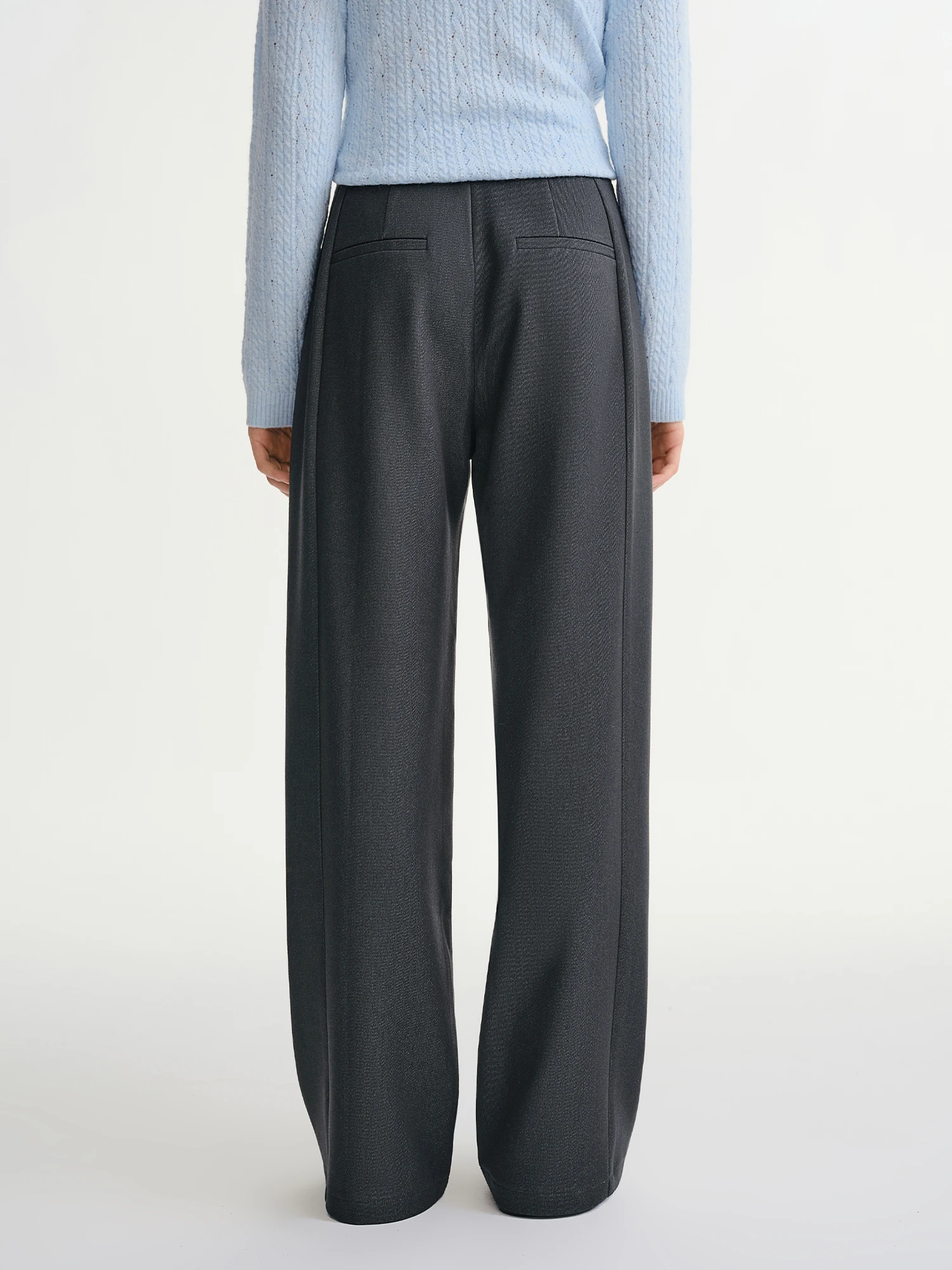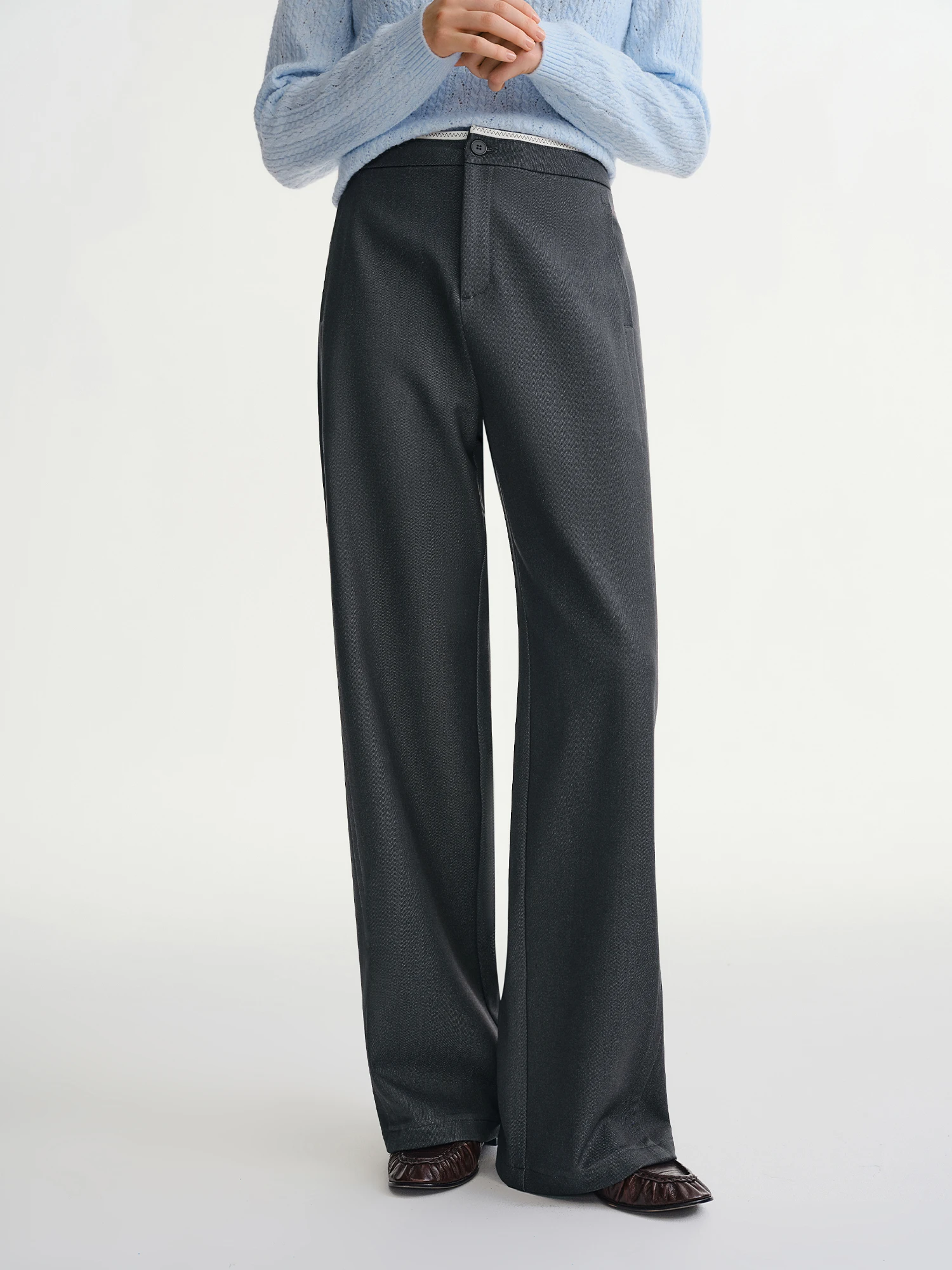 DUSHU Plus-size Women’s Career Advancement Tailored Slightly Flared Pants Winter High-waisted Flattering Straight-leg Casualwear
