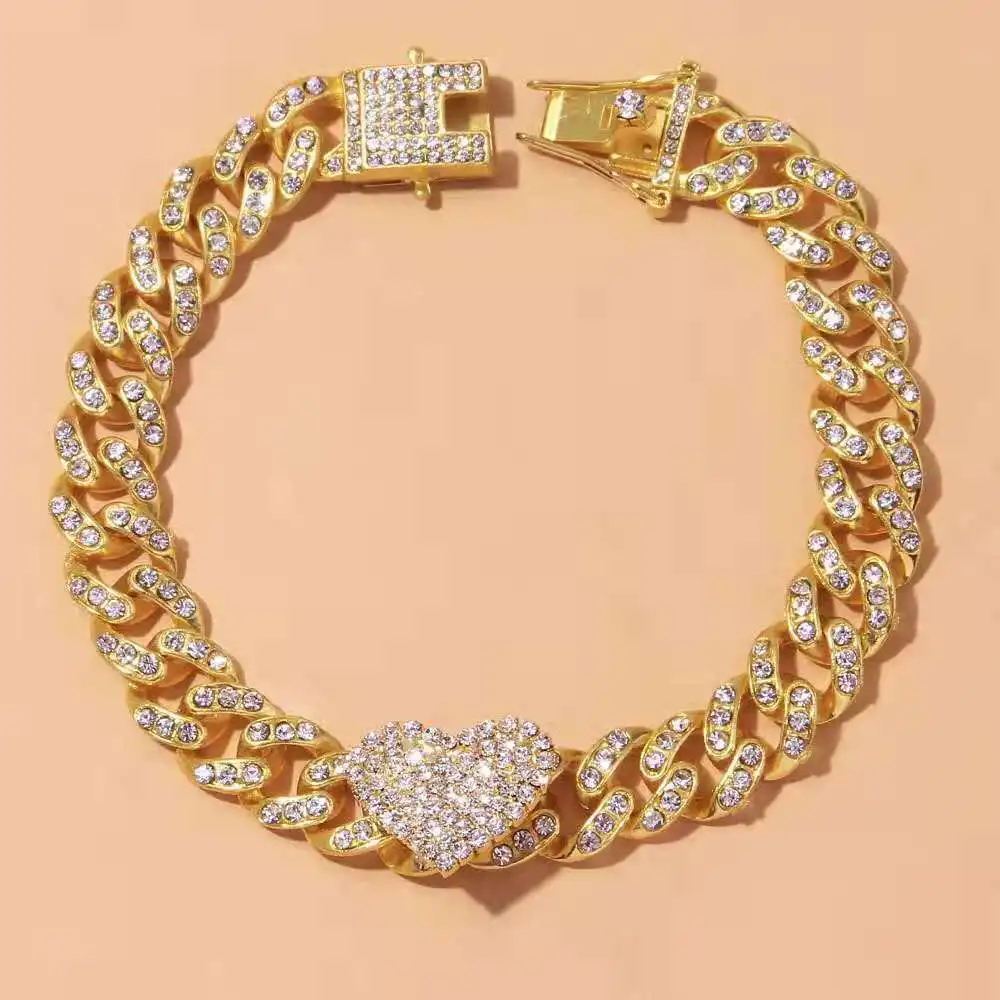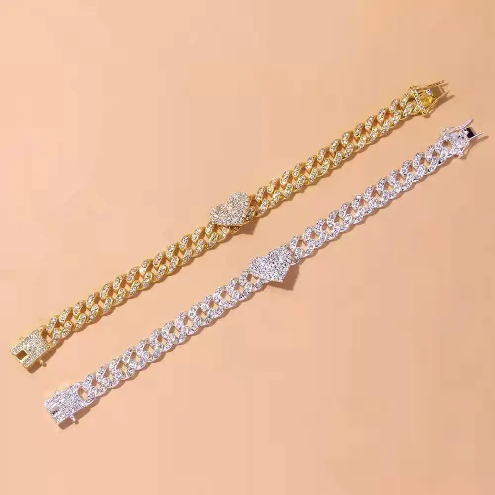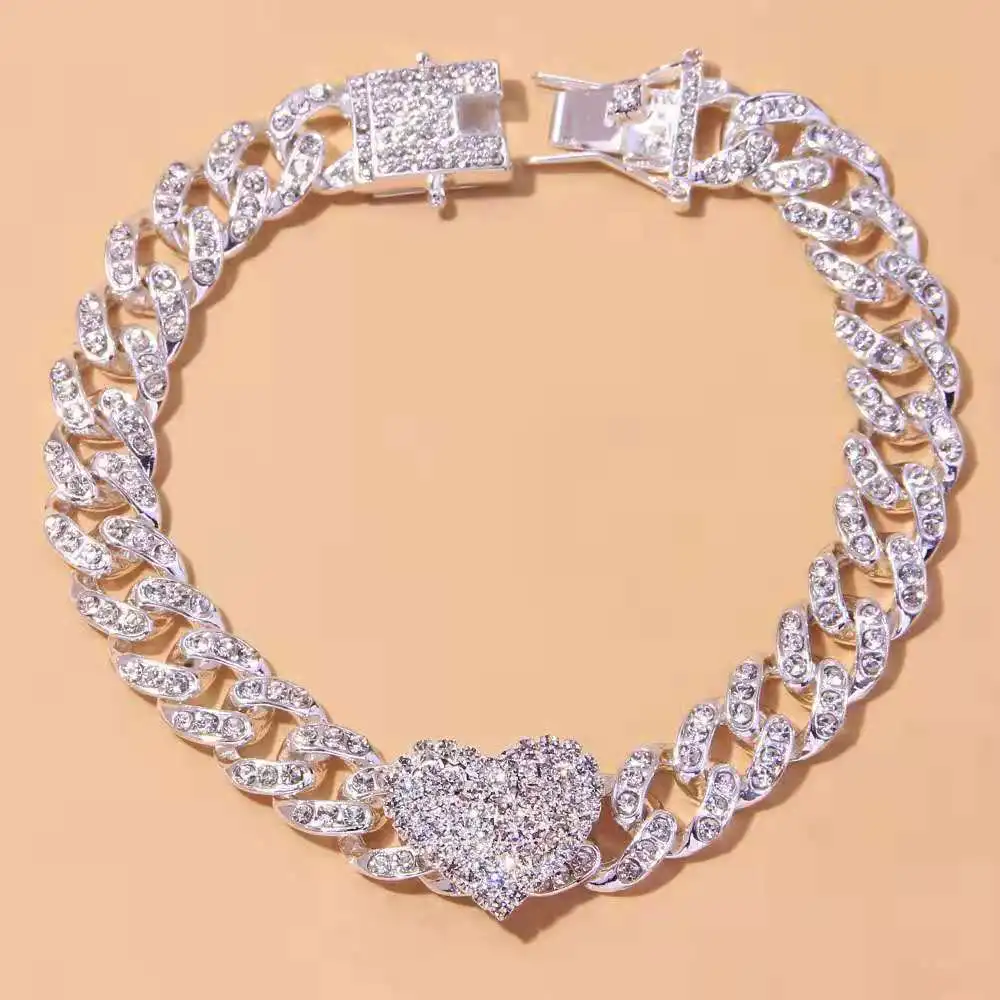 Fashion Hip Hop Crystal Heart-Shaped Anklet for Women Bracelet Men Miami Cuban Link Anklet Chunky Wholesale Foot Chain Iced Out