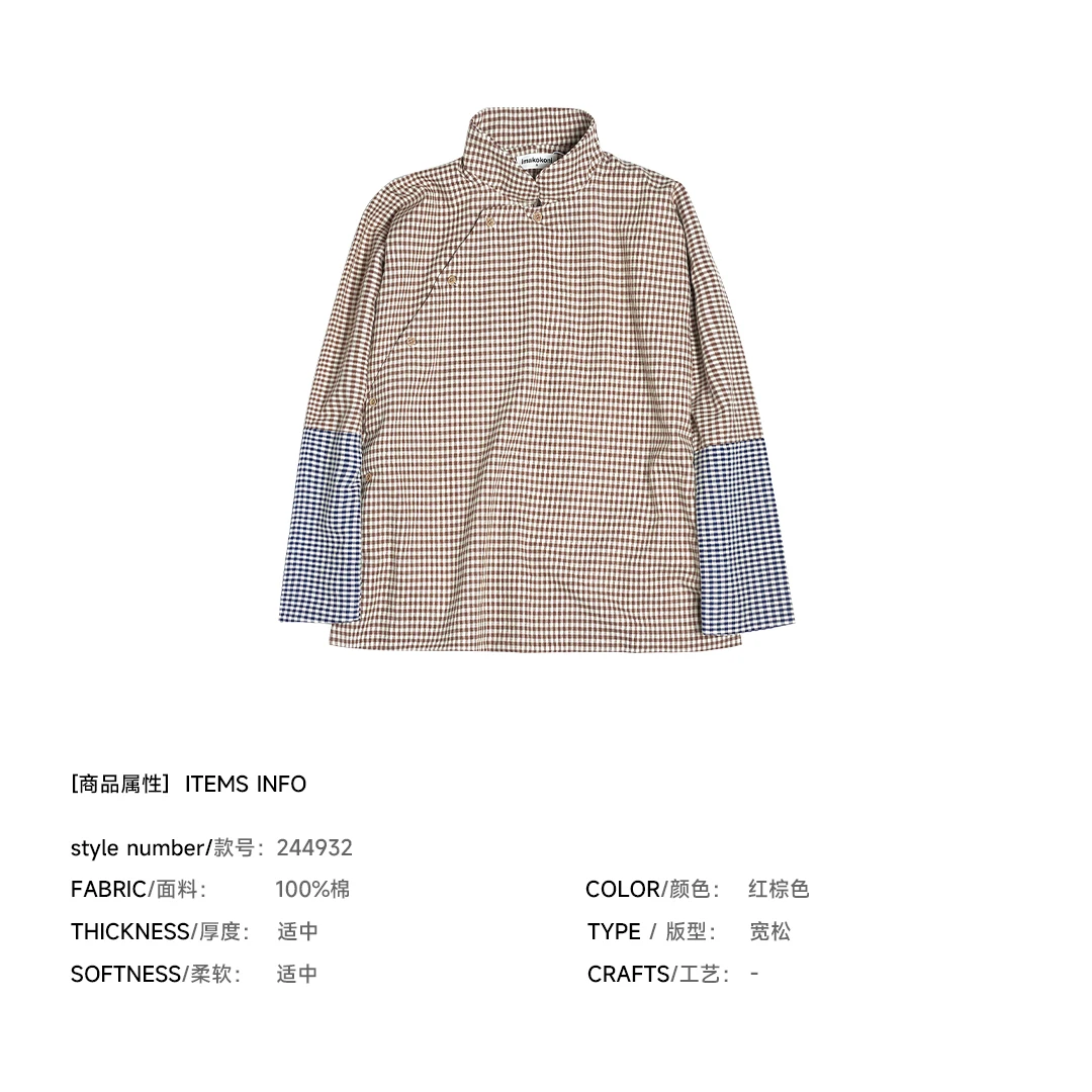 Add to cartimakokoni 2025 Spring Pure Cotton Color Contrasting Checkered New Chinese style Hanging Back Shirt 244932