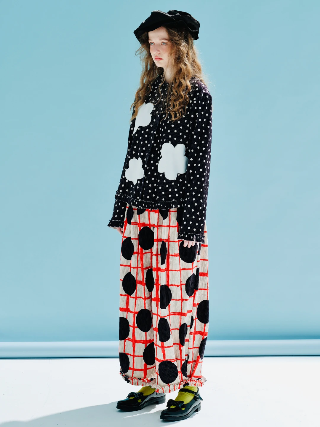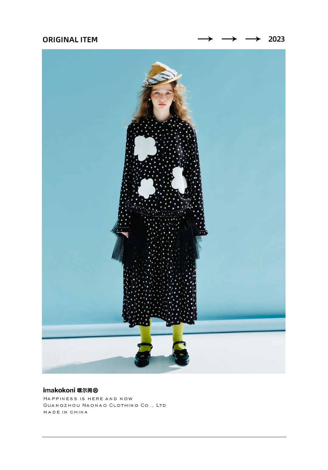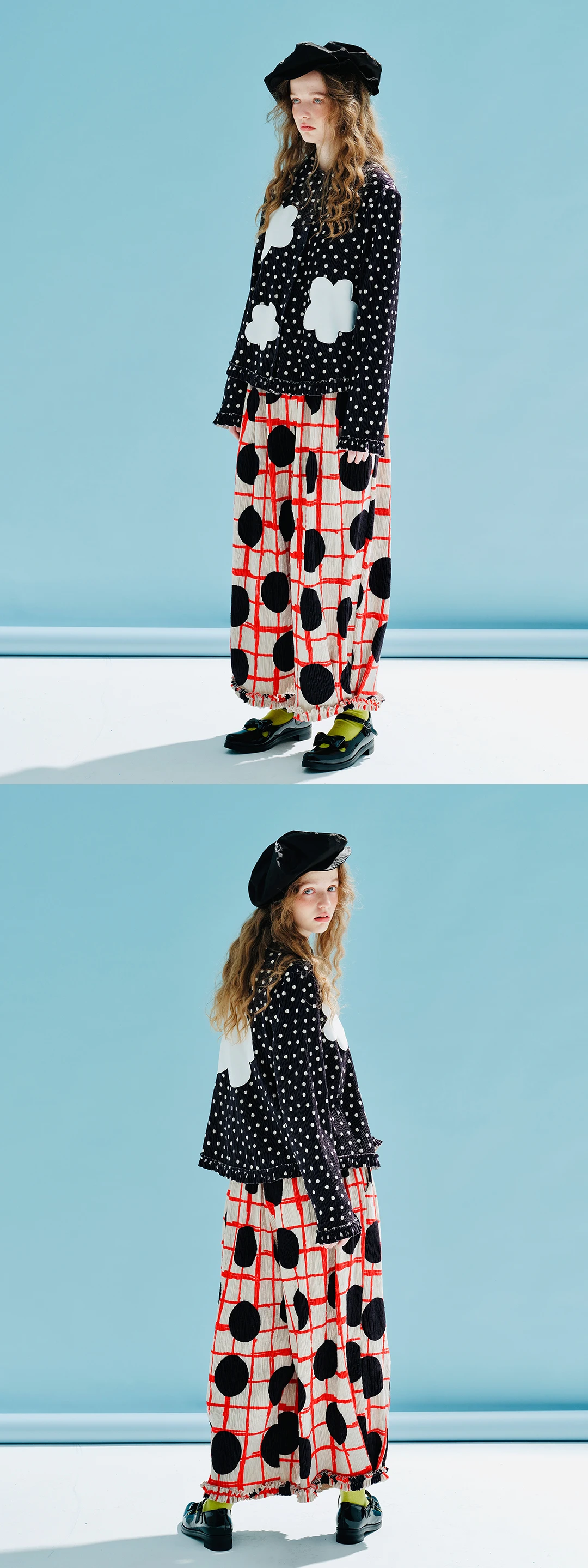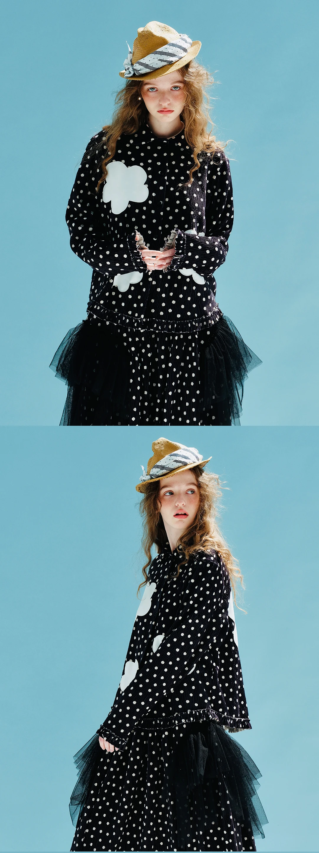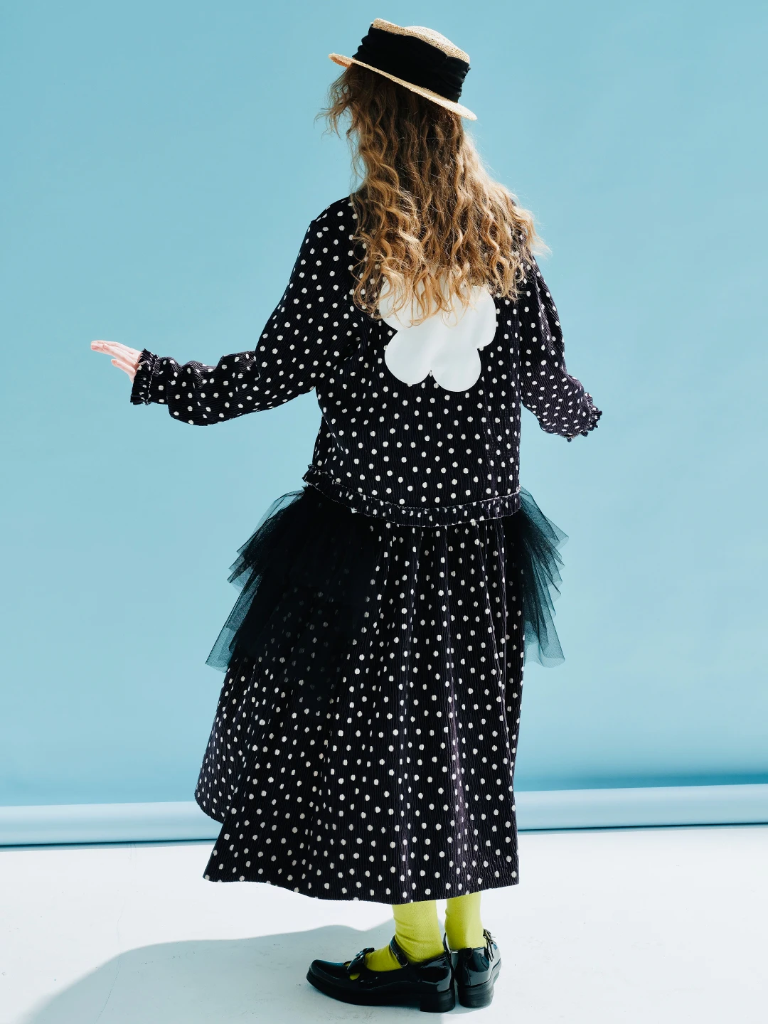 IMAKOKONI Original Design Long Sleeve Polka Dot Flower Shirt Lace Panel Black Single breasted Top Women’s Wear 233994
