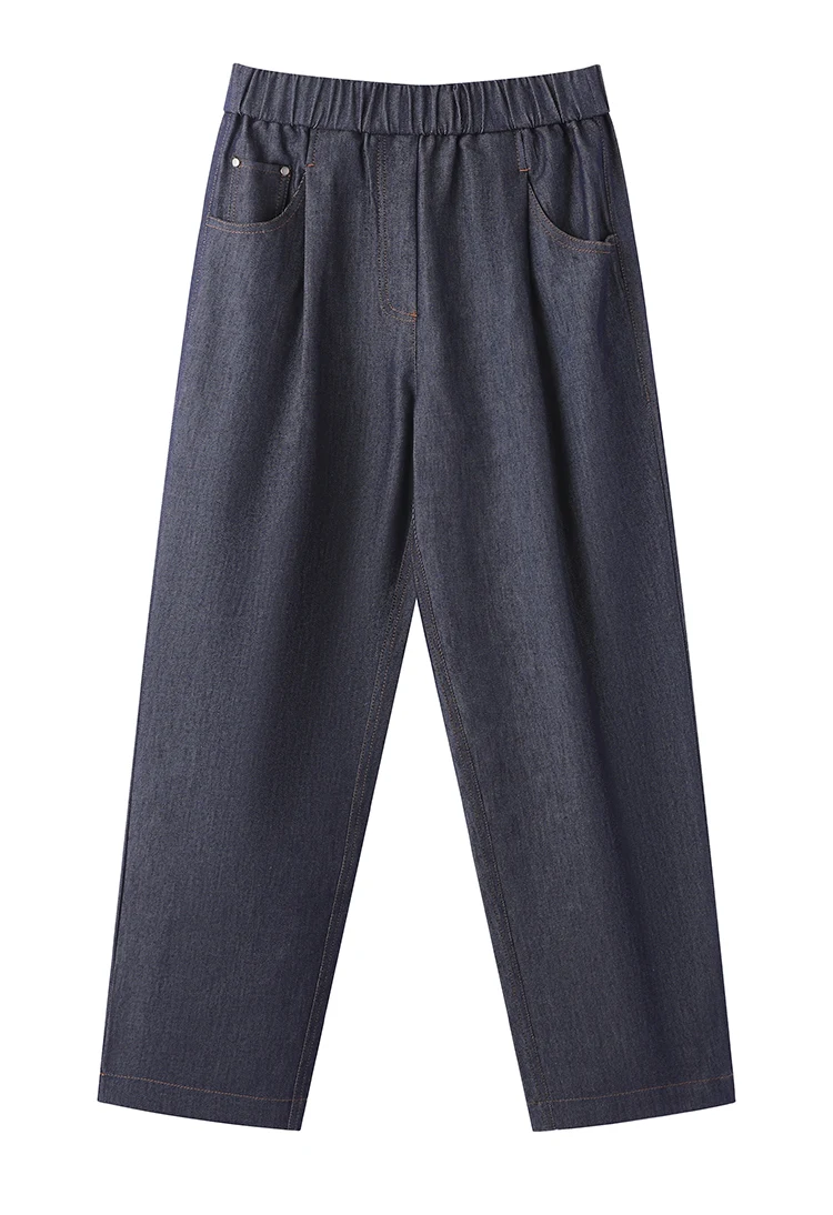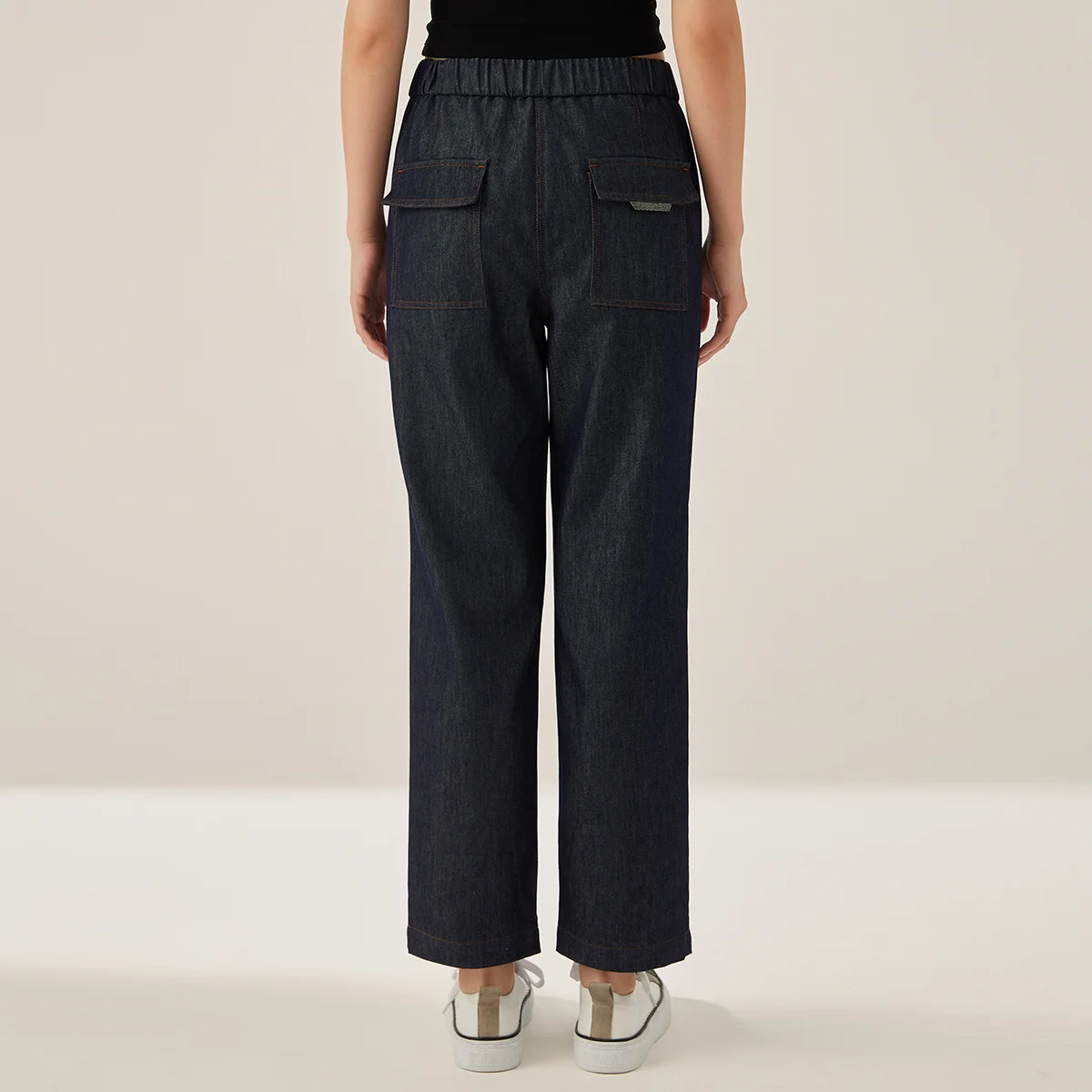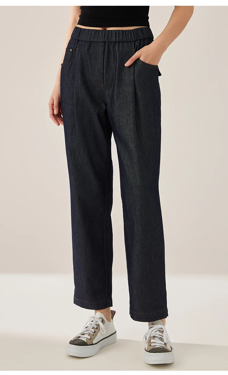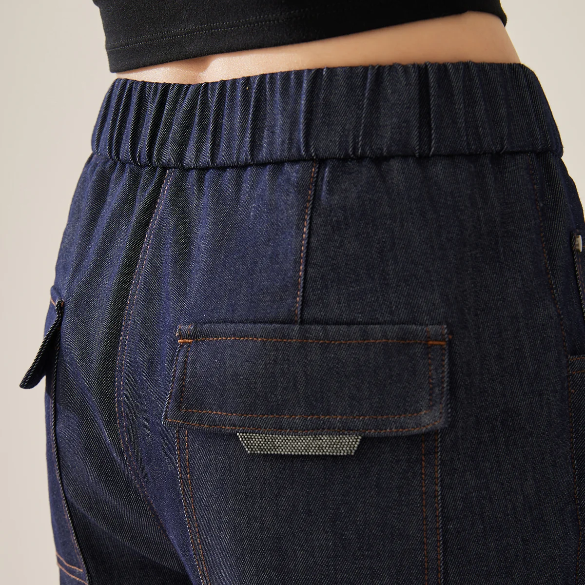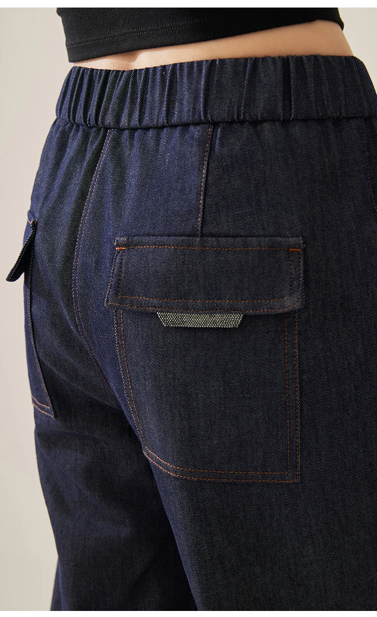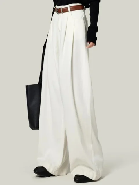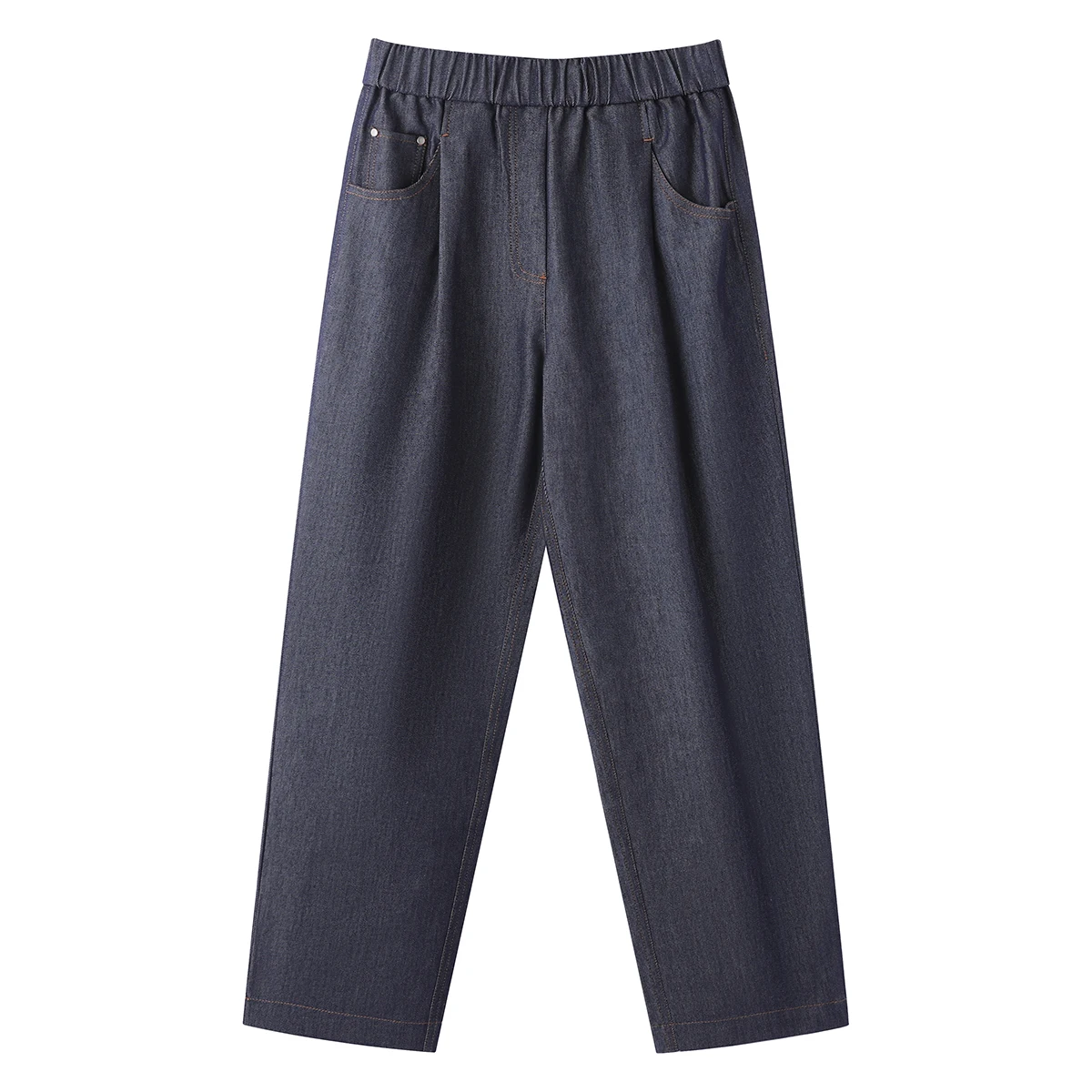 KW7523355 High-Waisted Wide Leg Denim Pants Women’s Casual Style Elastic Waist Blended Fabric Fall Clothing