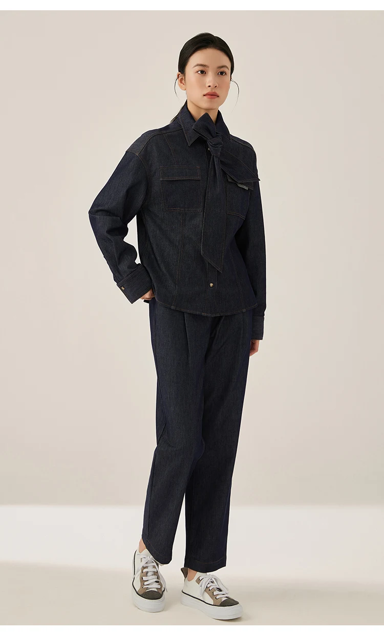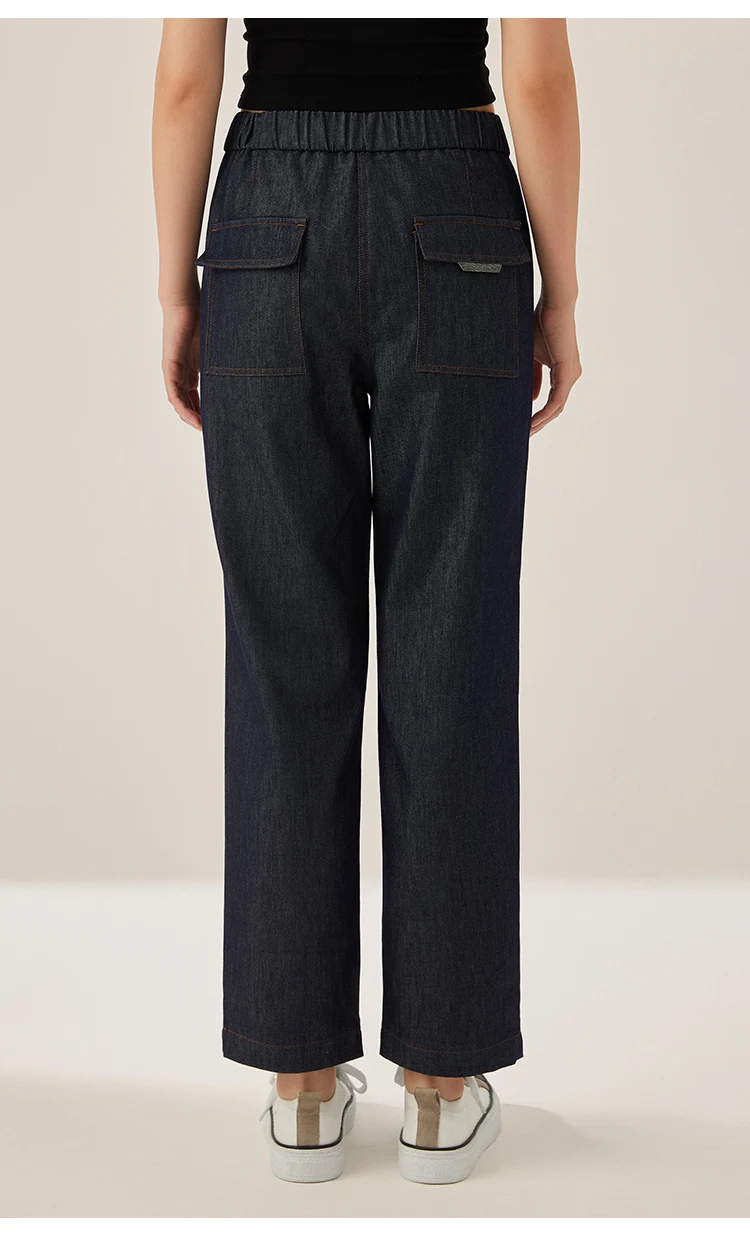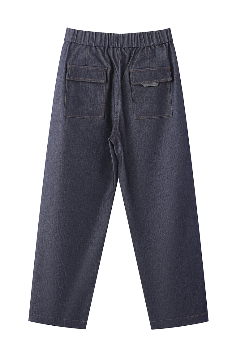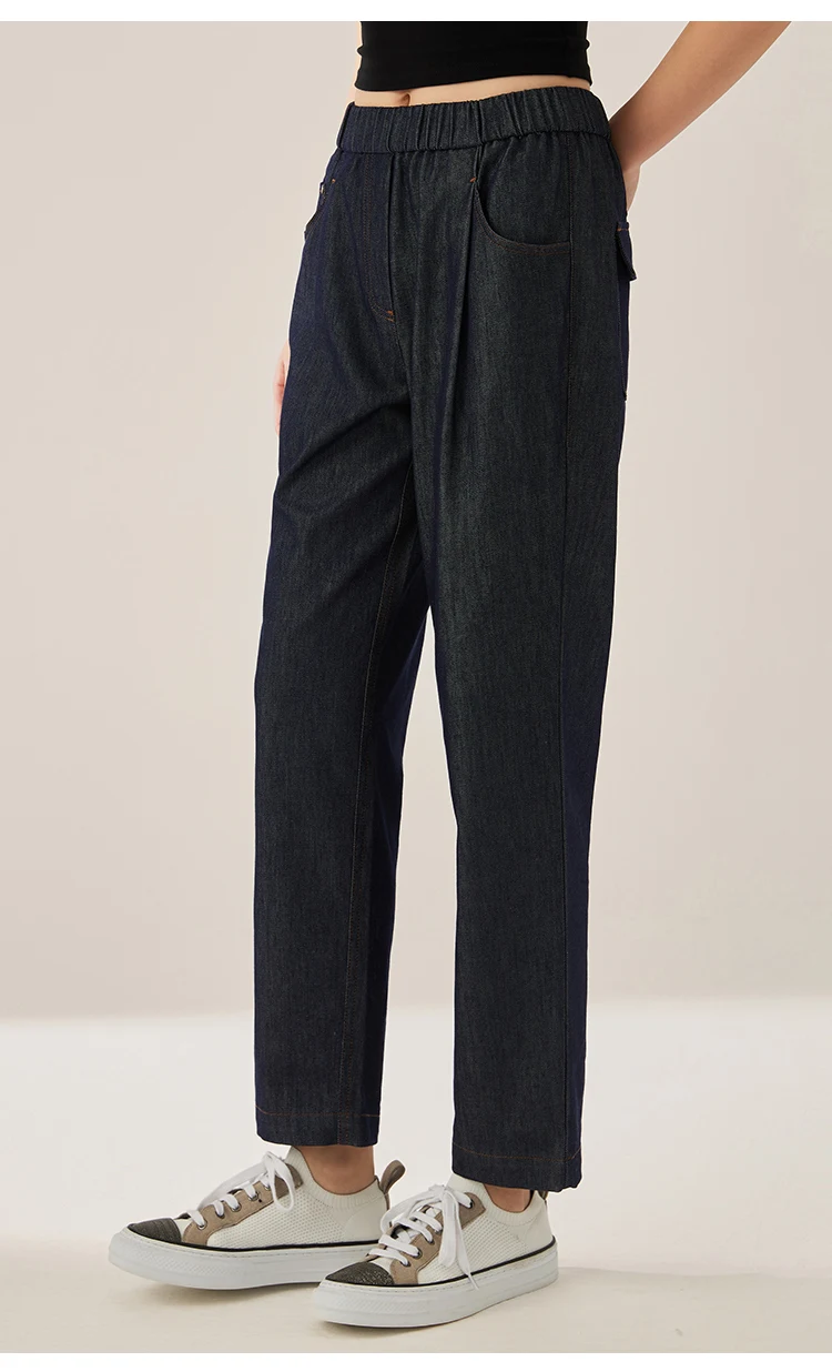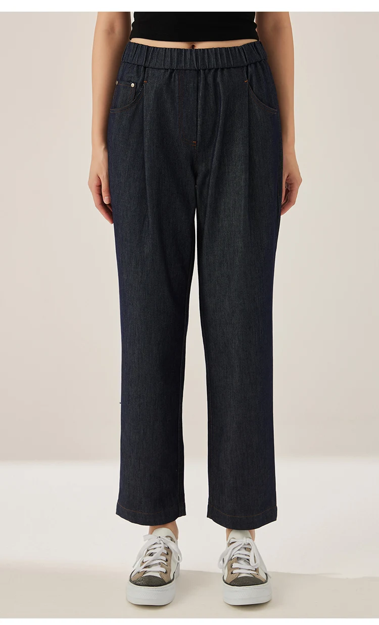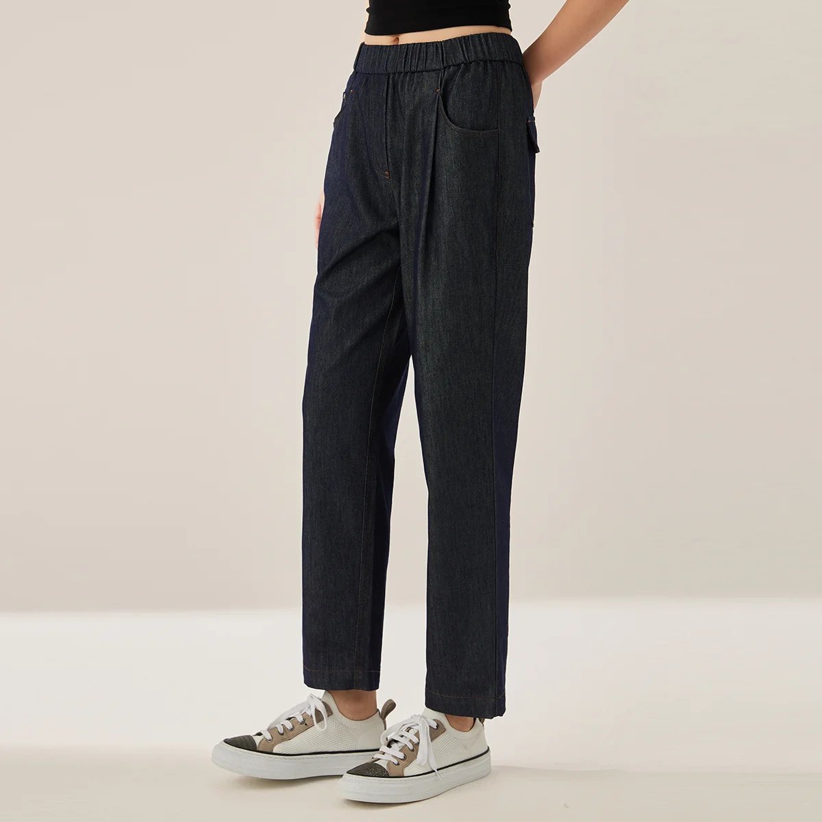 KW7523355 High-Waisted Wide Leg Denim Pants Women’s Casual Style Elastic Waist Blended Fabric Fall Clothing