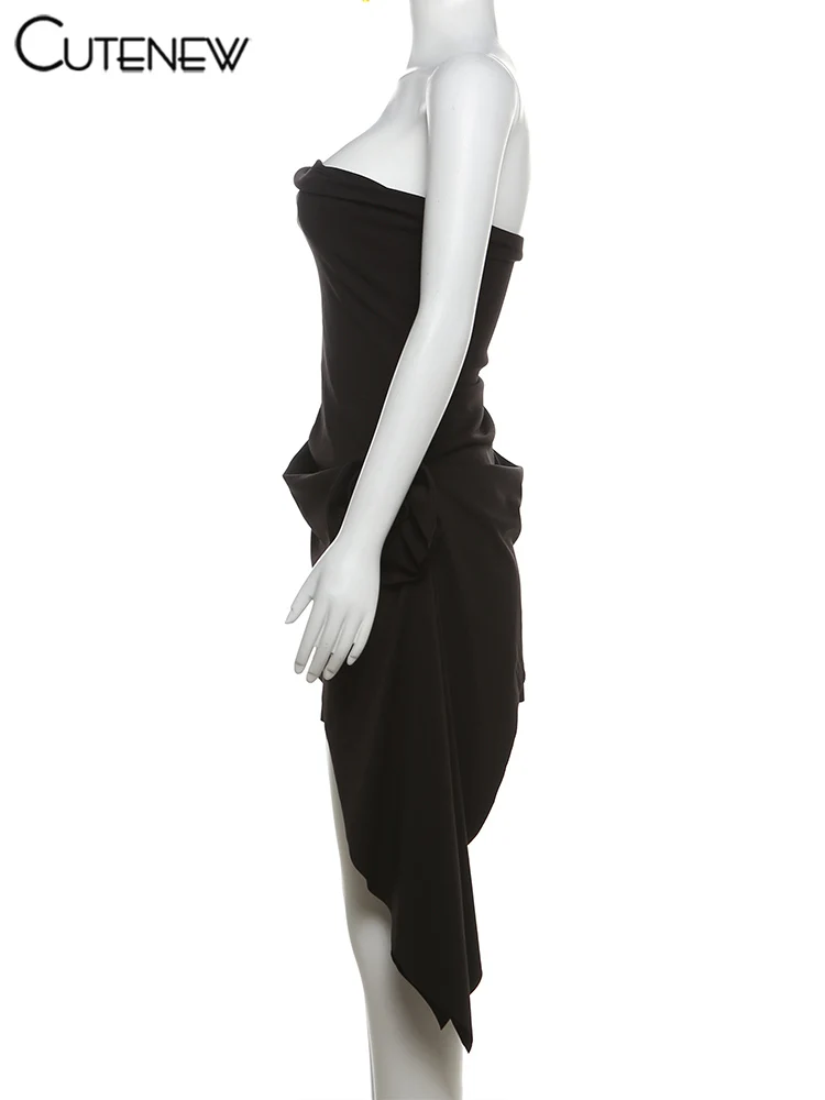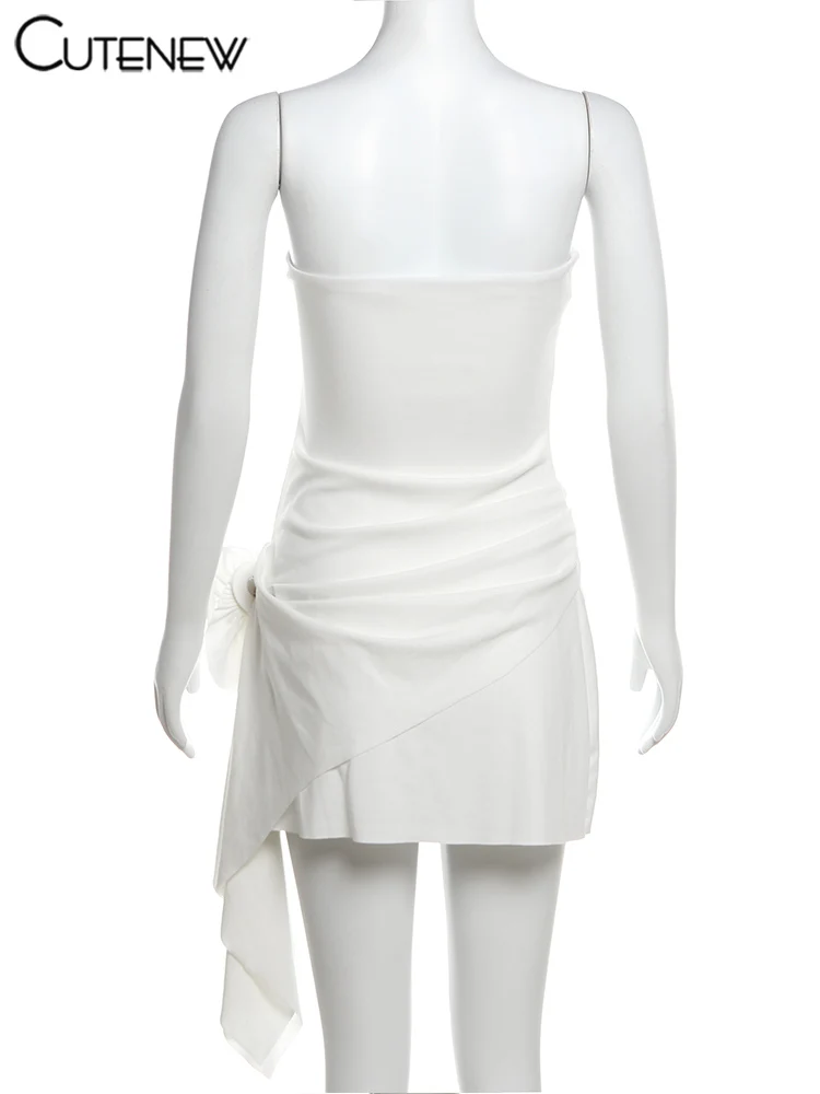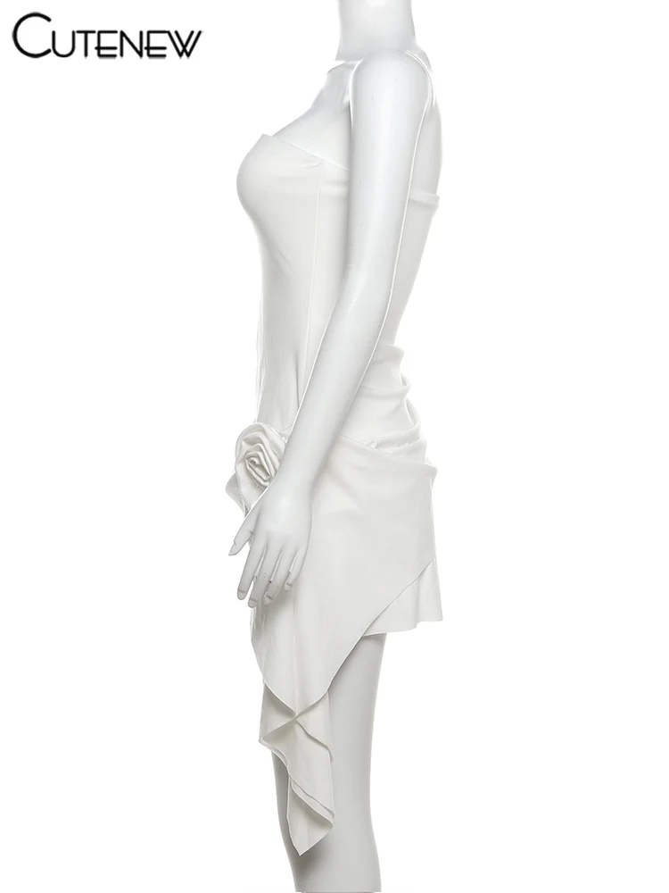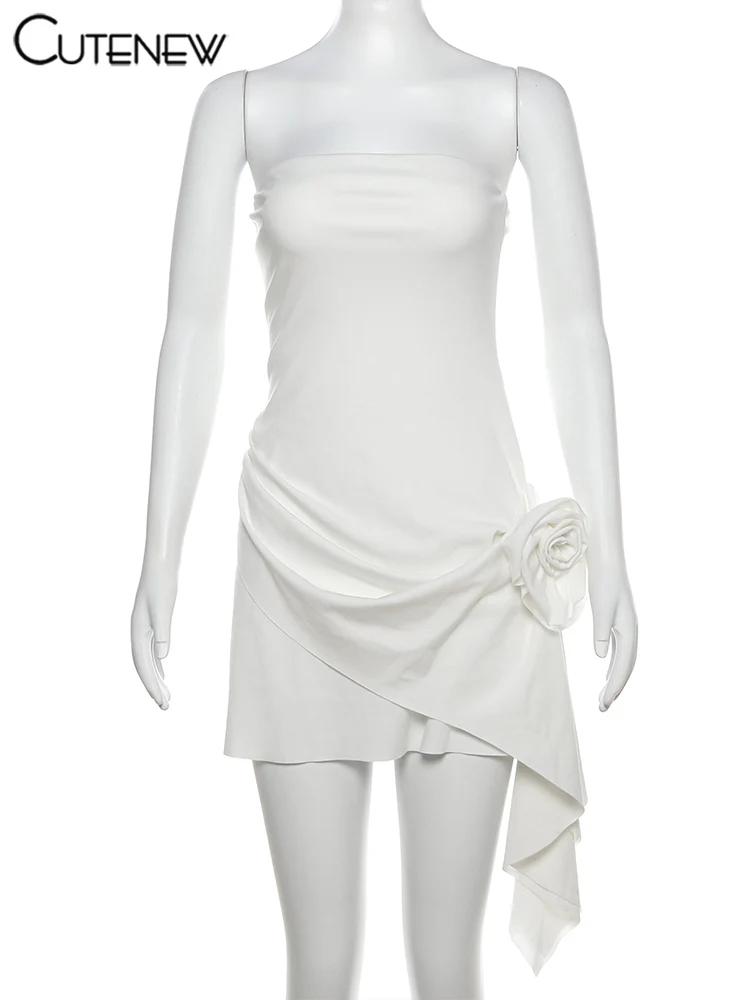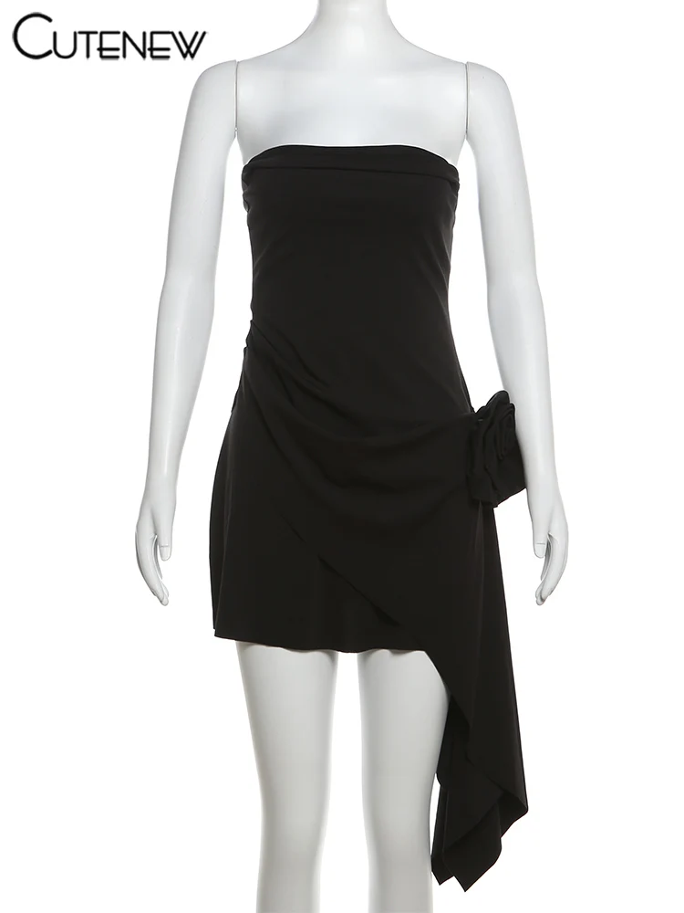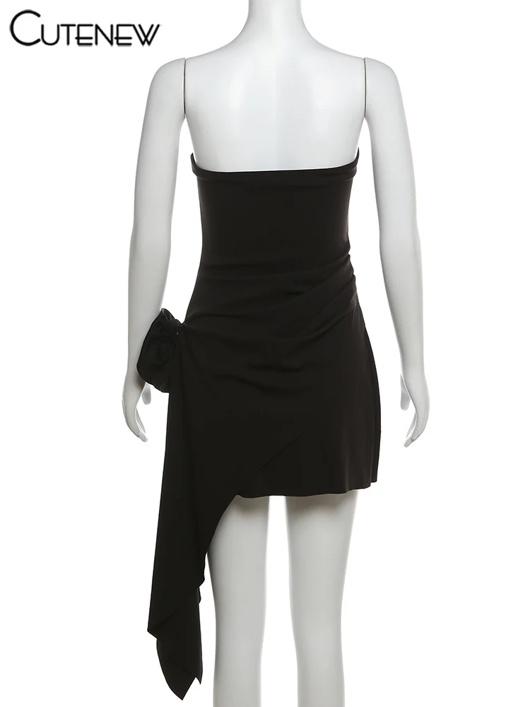 Nibber Floral Solid Mini Dress Women Basic Trend Birthday Party Chic Irregular Strapless Cross Sheath Vestidos Concise Clothing