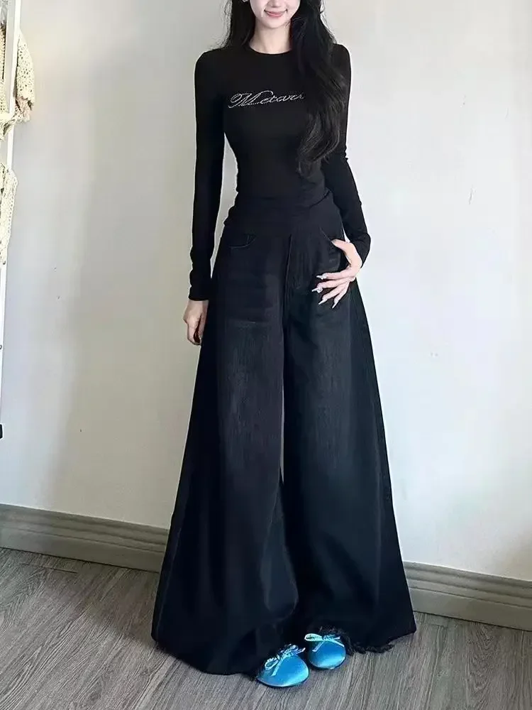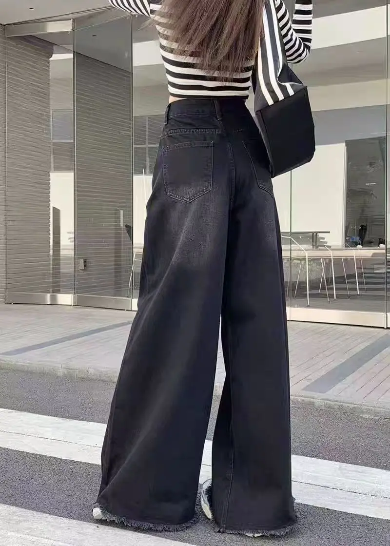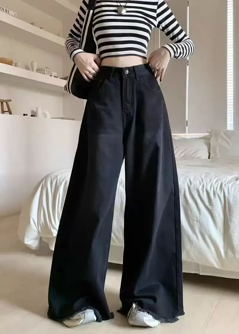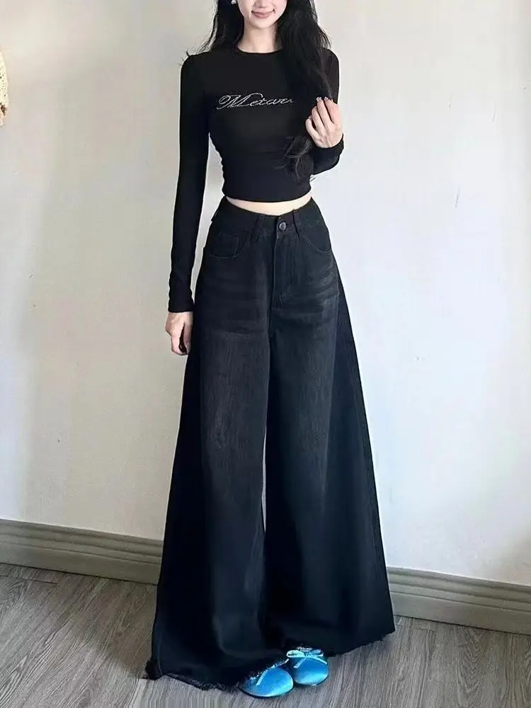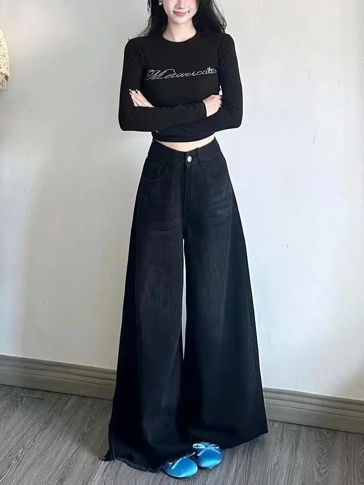 Wide Leg Jeans Women Denim Pants Vintage Straight Trousers Autumn Spring Fashion Female Black Casual Jeans Wide Leg Pants