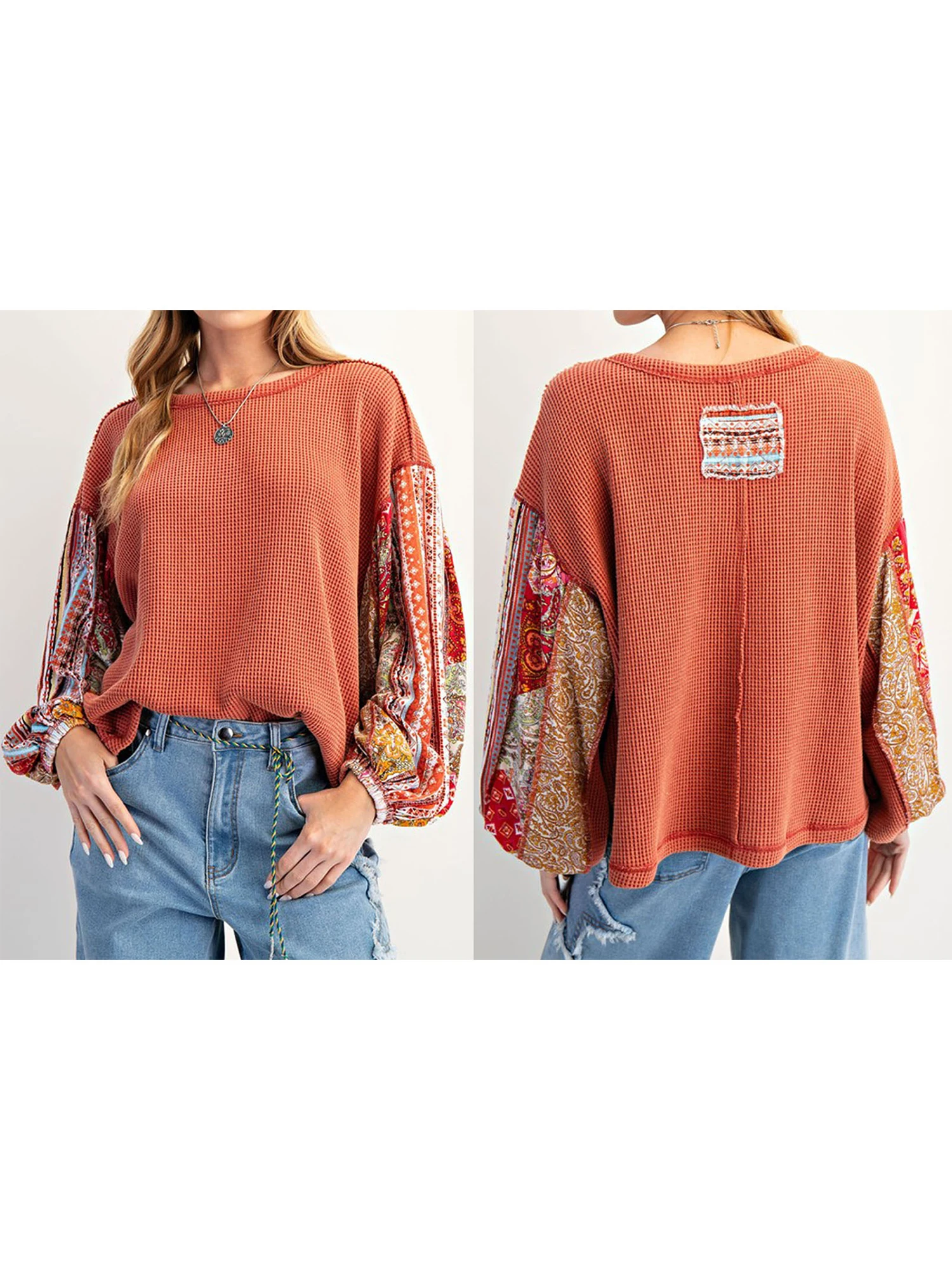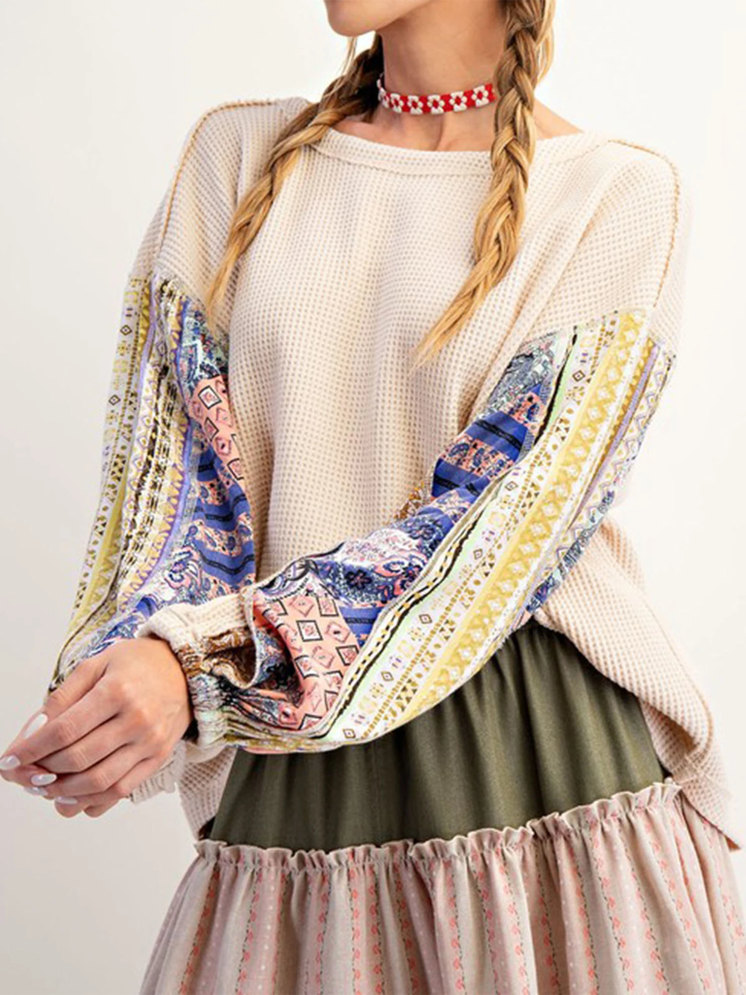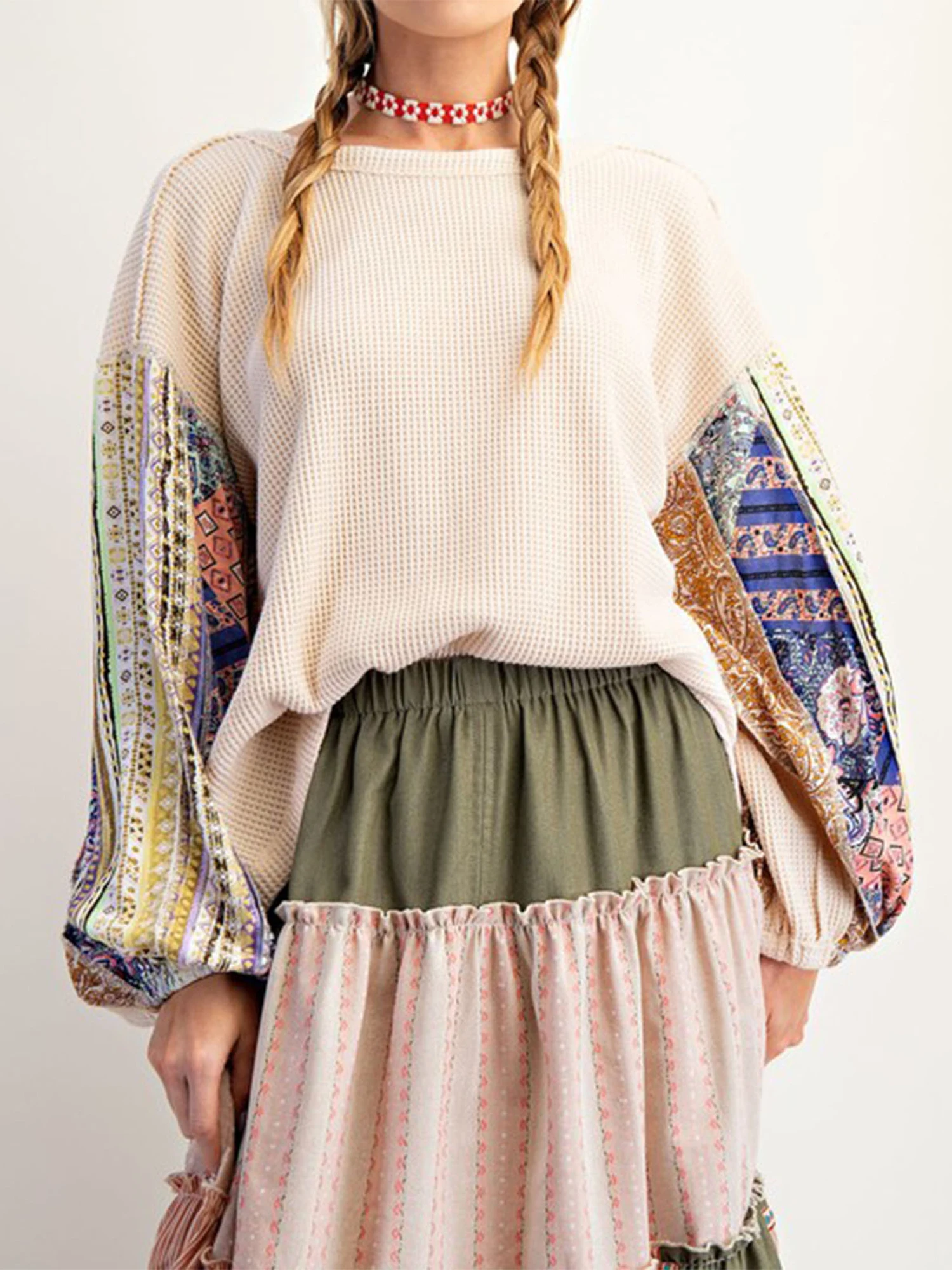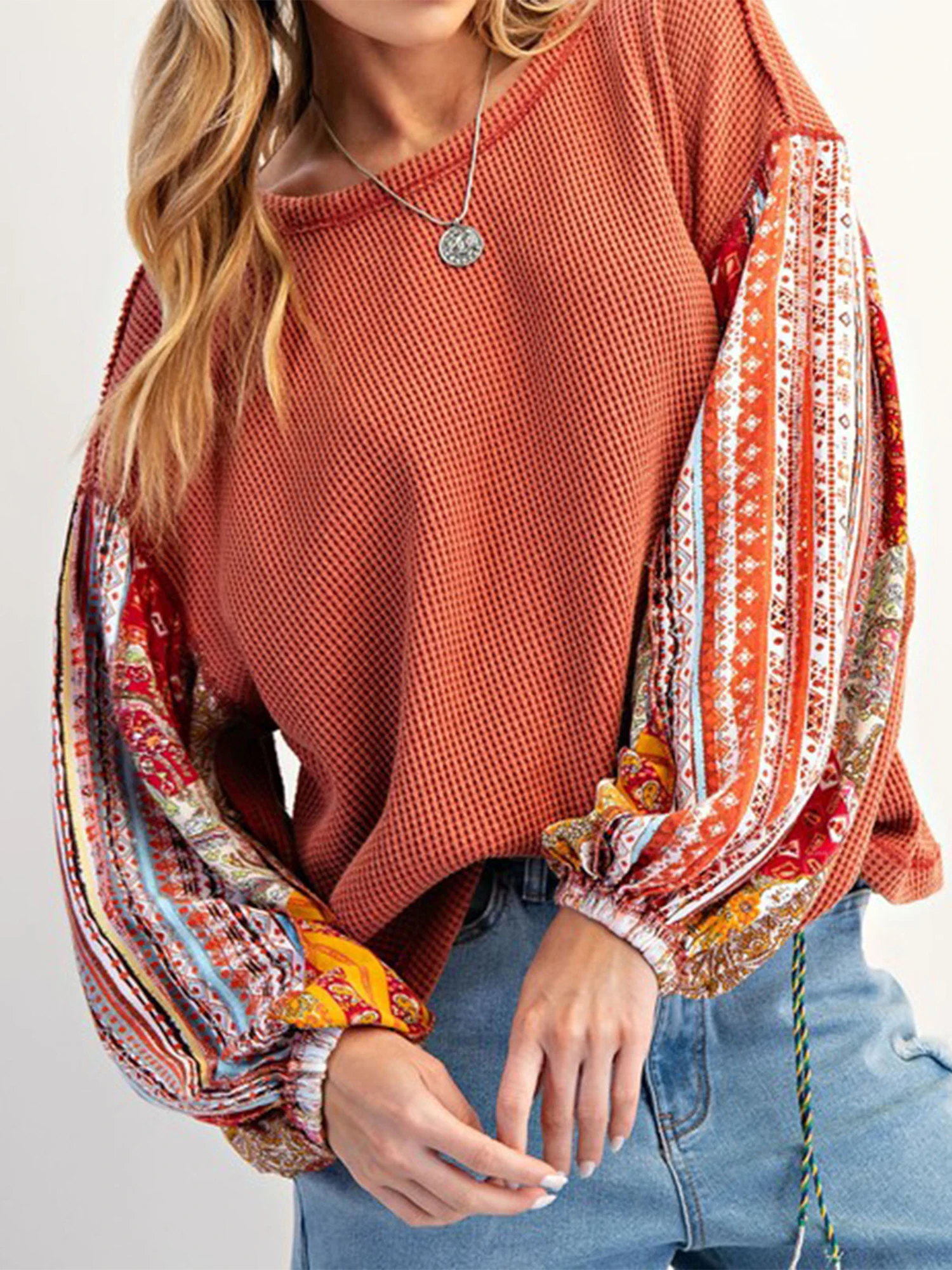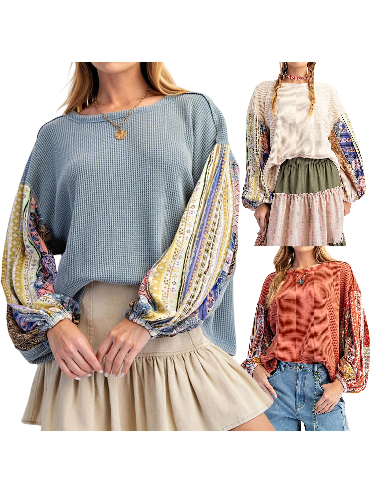 Women Sweatshirt, Long Sleeve Crew Neck Printed Patchwork Hoodie Pullover Casual Tops