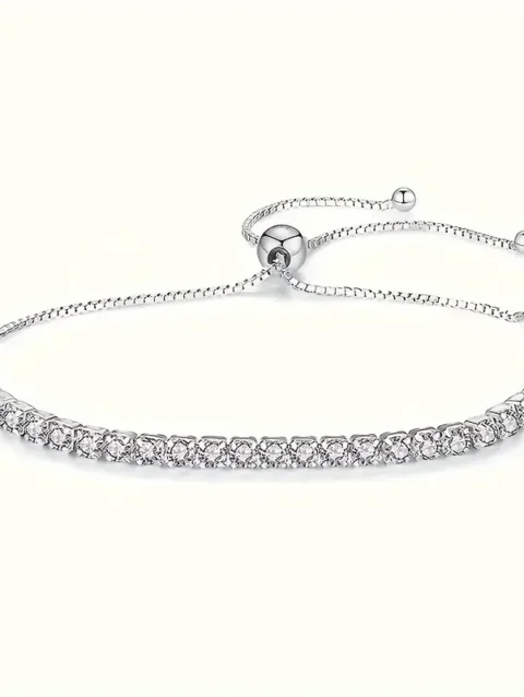 Elegant Unisex Tennis Bracelet, 925 Silver with 18K White Gold Plating, Fashionable Moissanite Studded, Adjustable Chain