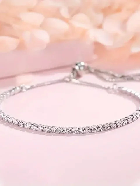 Elegant Unisex Tennis Bracelet, 925 Silver with 18K White Gold Plating, Fashionable Moissanite Studded, Adjustable Chain