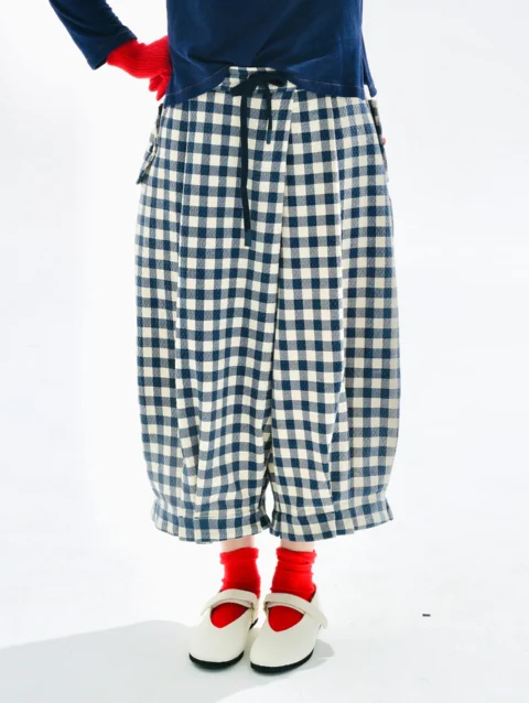 imakokoni 2025 Spring Pure Cotton Color Contrasting Checkered New Chinese style Hanging Back Shirt 244932