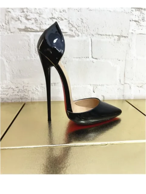 12cm sexy pointed thin heel black high heels women’s patent leather hollow shallow mouth men’s and women’s plus size shoes